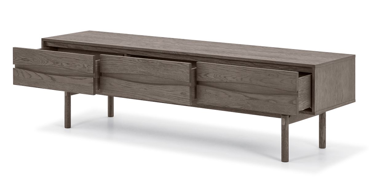 TV-Schrank Quadri aus massivem Eichenholz mit Schubladen in Espresso Braun. .. mehr