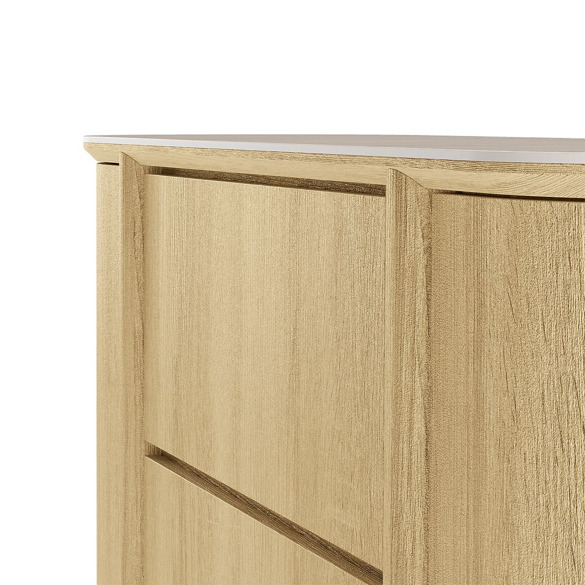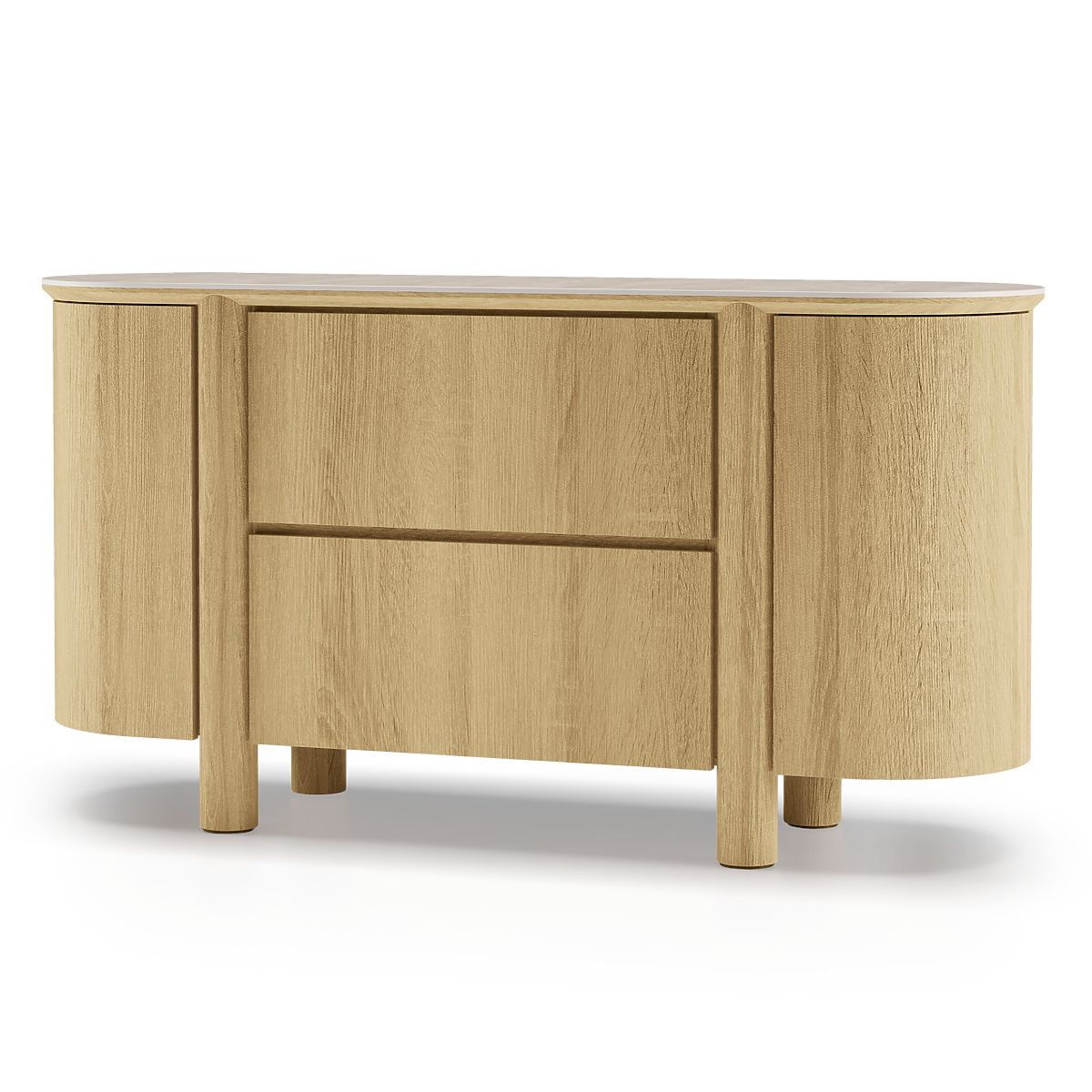 Abgerundete Kommode Segretto aus Natur-Eiche mit Travertin-Dekor. .. mehr