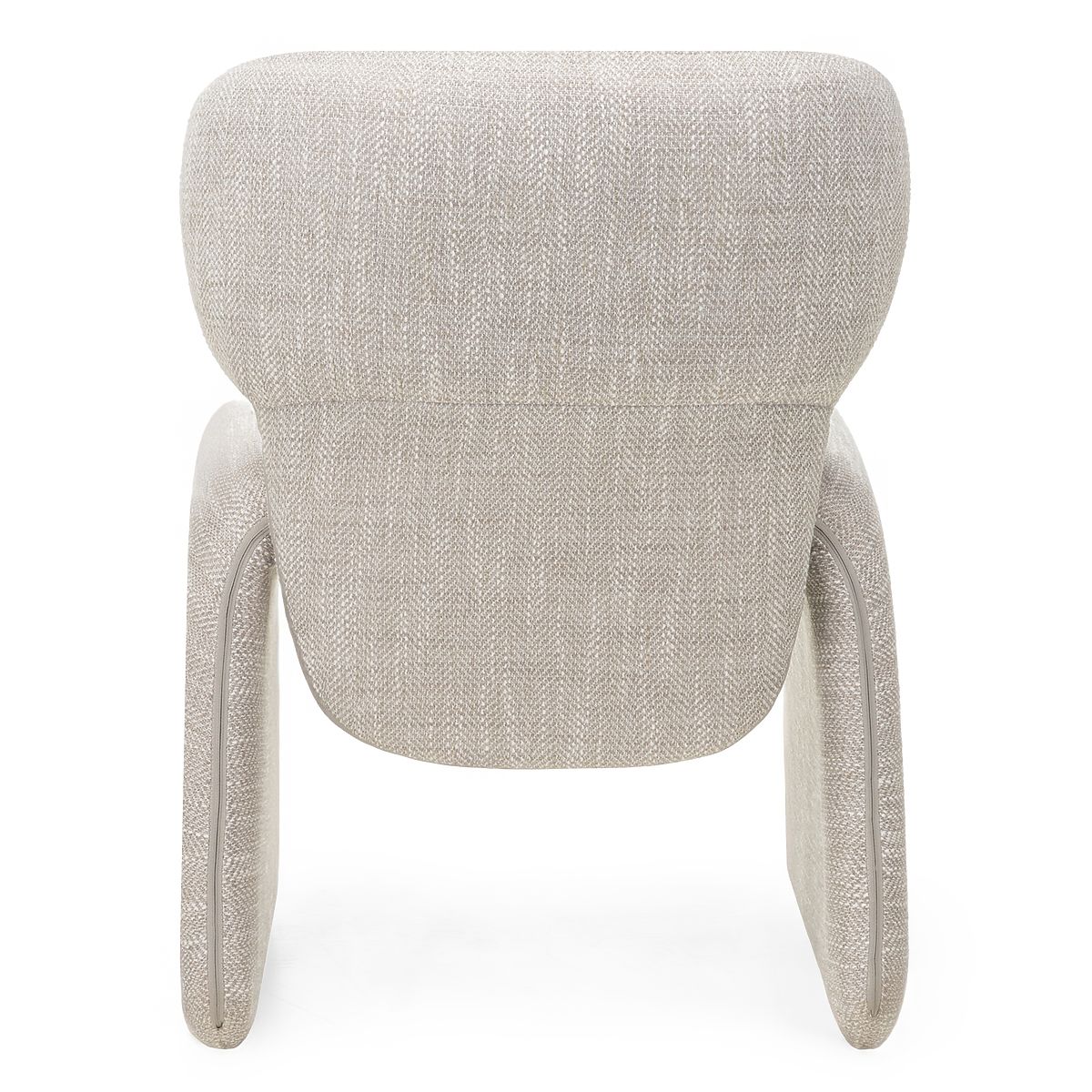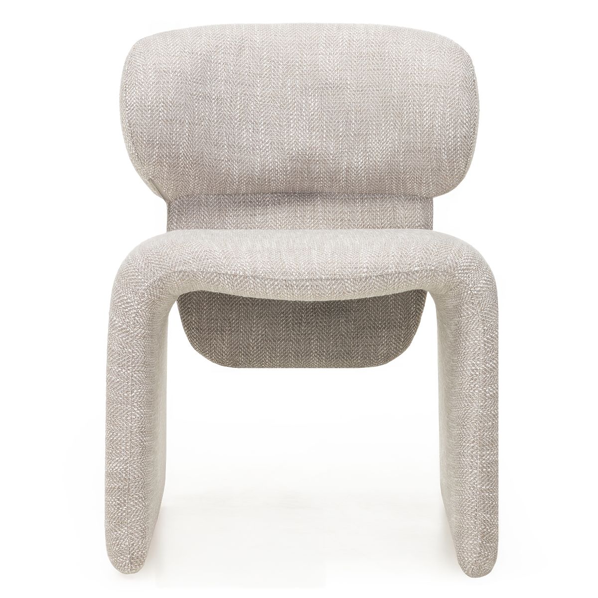 Gepolsterter Stuhl Nabila mit einzigartiger Form und beige-grauem Stoff. .. mehr