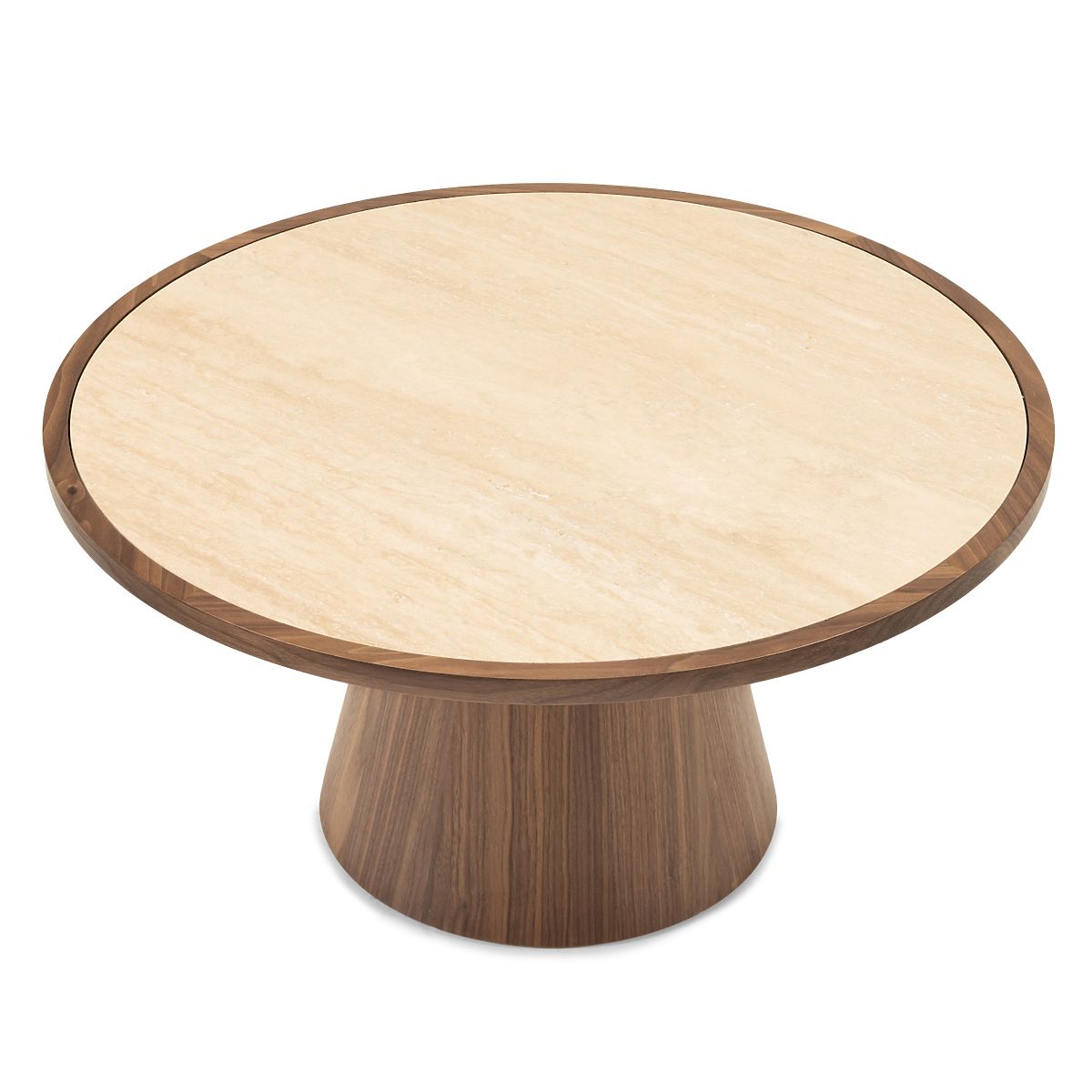 Luka-home.de » Tischtennisplatten a tische / Konferenz tische / Couchtisch Kyoto 80 cm, rund, Travertin/Nussbaum