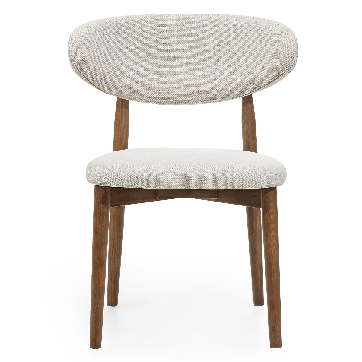 Beiger Stoff und braune Eschenholzbeine für modernen Komfort. .. mehr