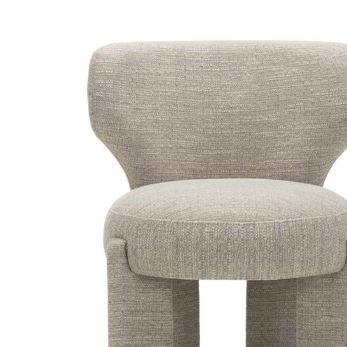 Beiger Stuhl Elaine mit runder Form und weichem Stoffbezug. .. mehr