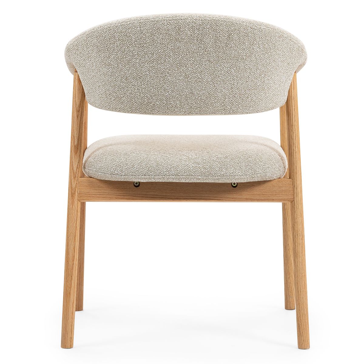 Gepolsterter Stuhl Capri mit hellbeigem Stoff und Eichenholz. .. mehr
