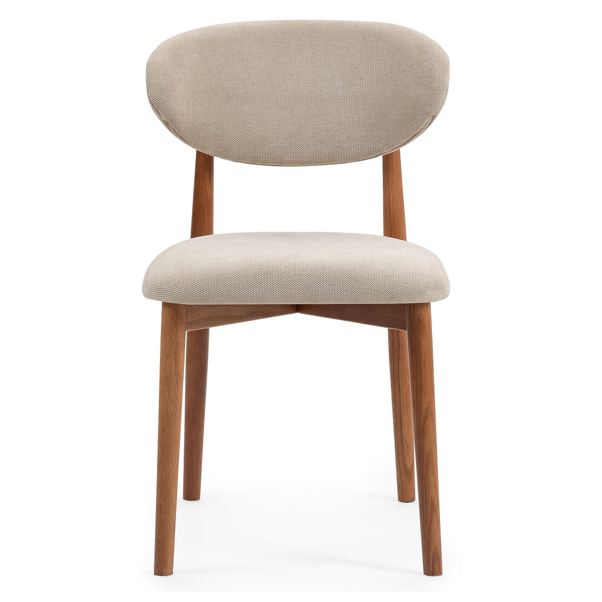 Stuhl Merano mit beigem Stoffbezug und hellen Nussbaumholzbeinen. .. mehr