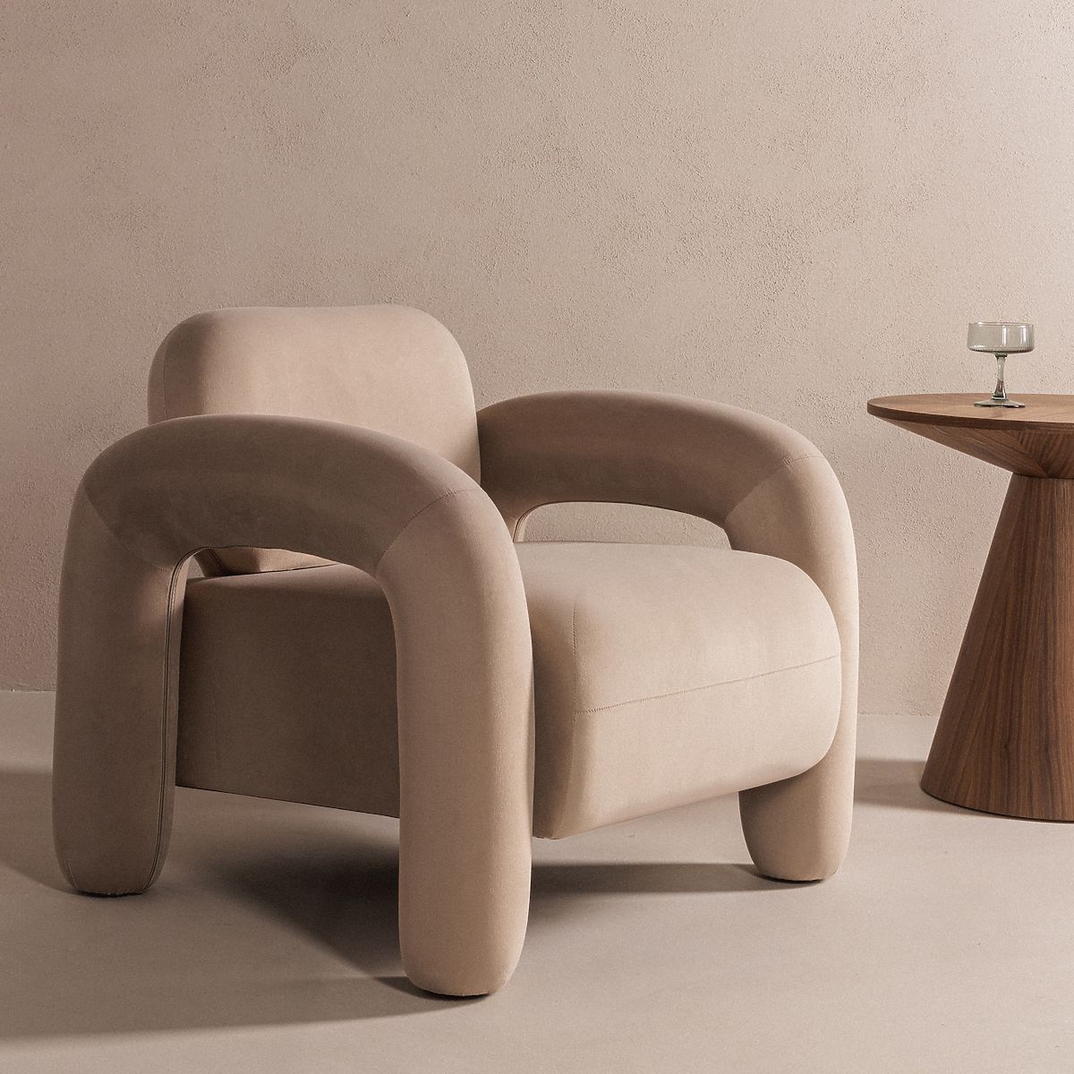 Sessel Vico mit hellbeiger Samtpolsterung für modernen Komfort. .. mehr