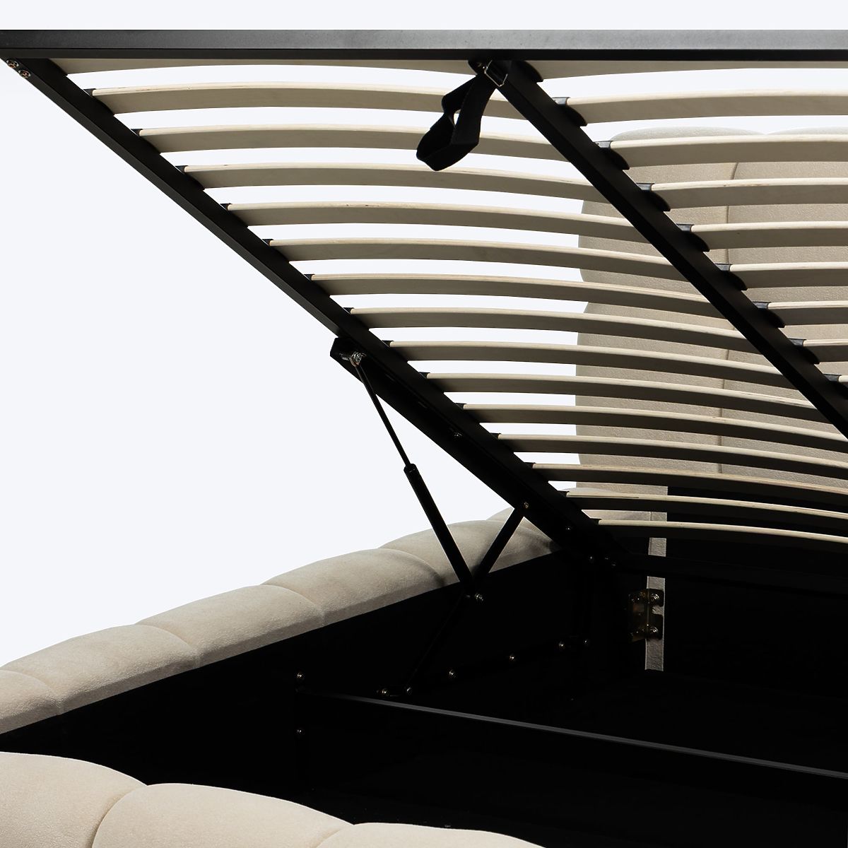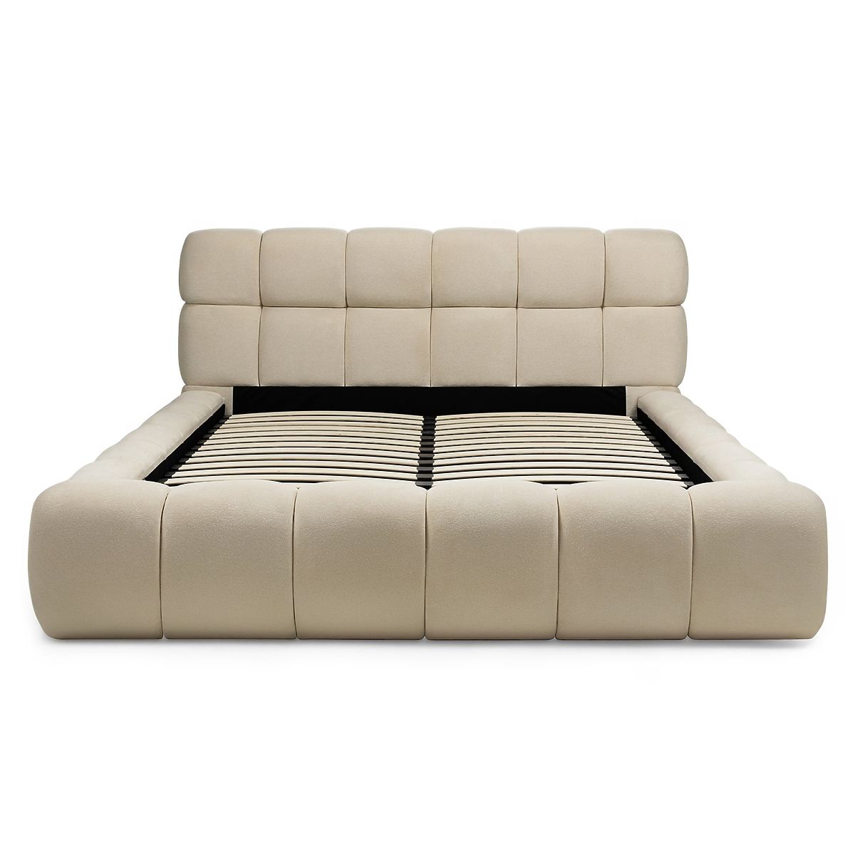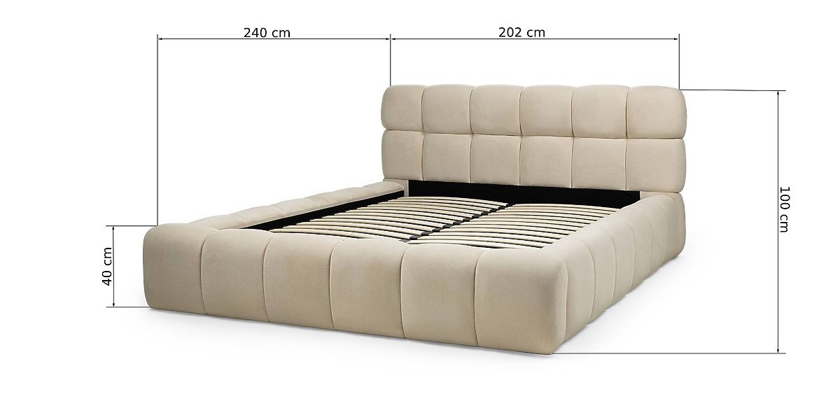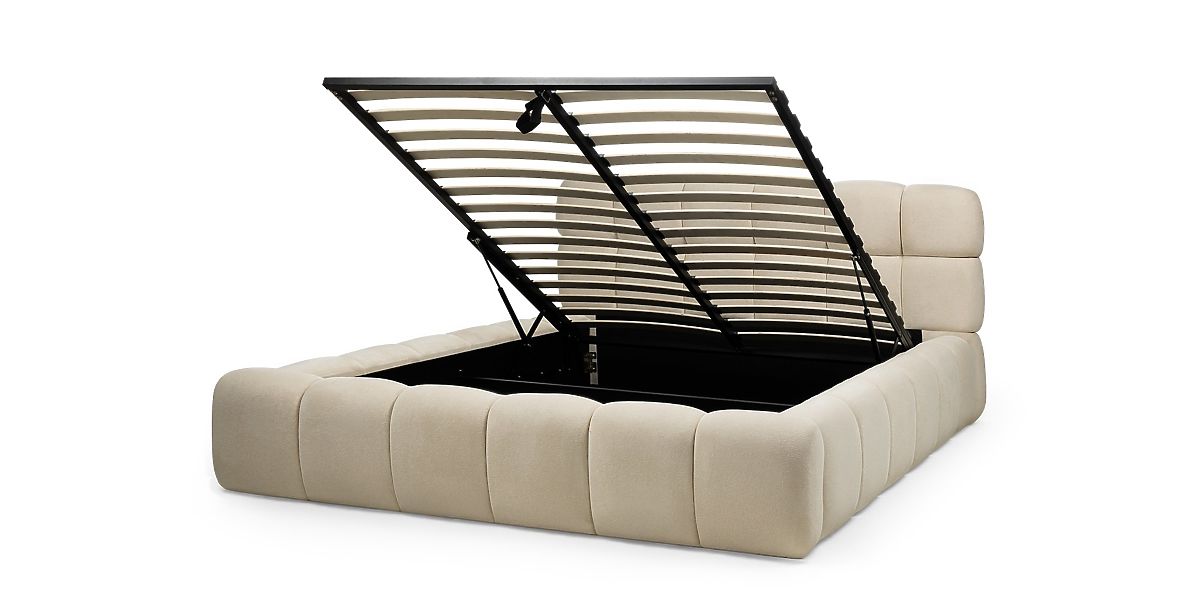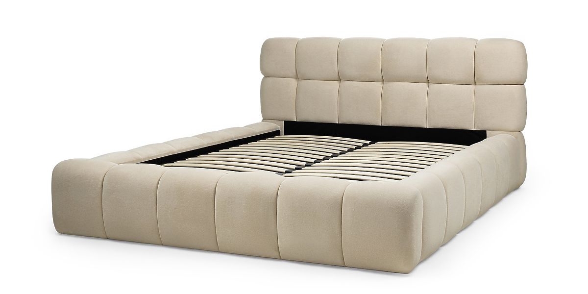 Luka-home.de » Betten / Doppelbetten / Betten 160x200 / Gepolstertes Bett Nexo 160x200 cm, mit Lattenrost und Stauraum, hellbeige, abgerundete Formen