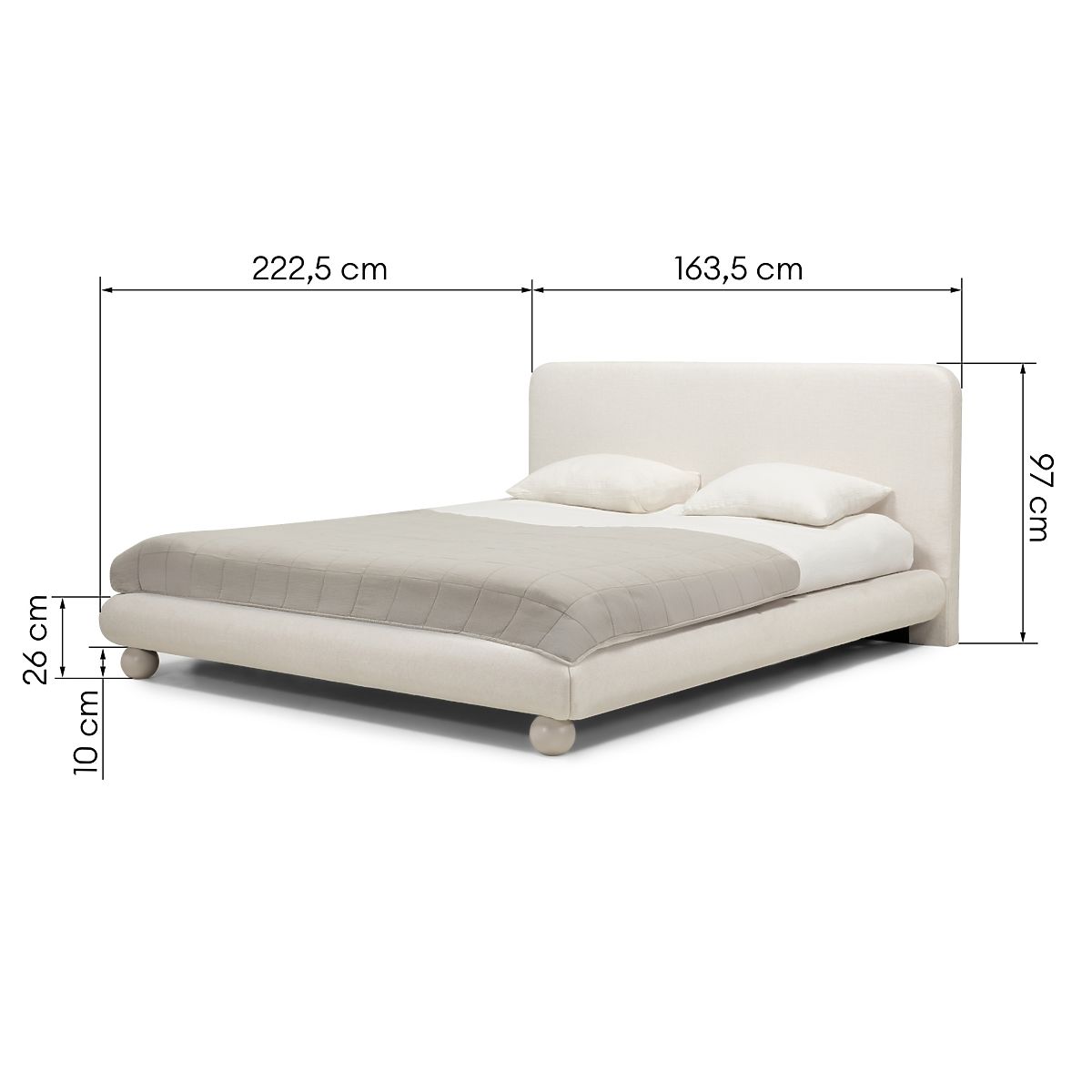 Gepolstertes Bett Booli mit Kugelbeinen und Lattenrost. .. mehr