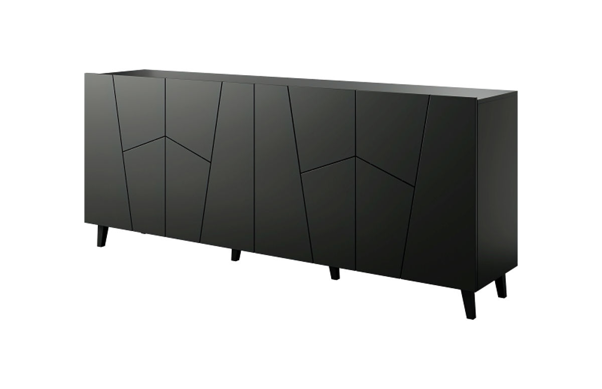 Schwarze matte Kommode mit flexibler Frontmontage. .. mehr
