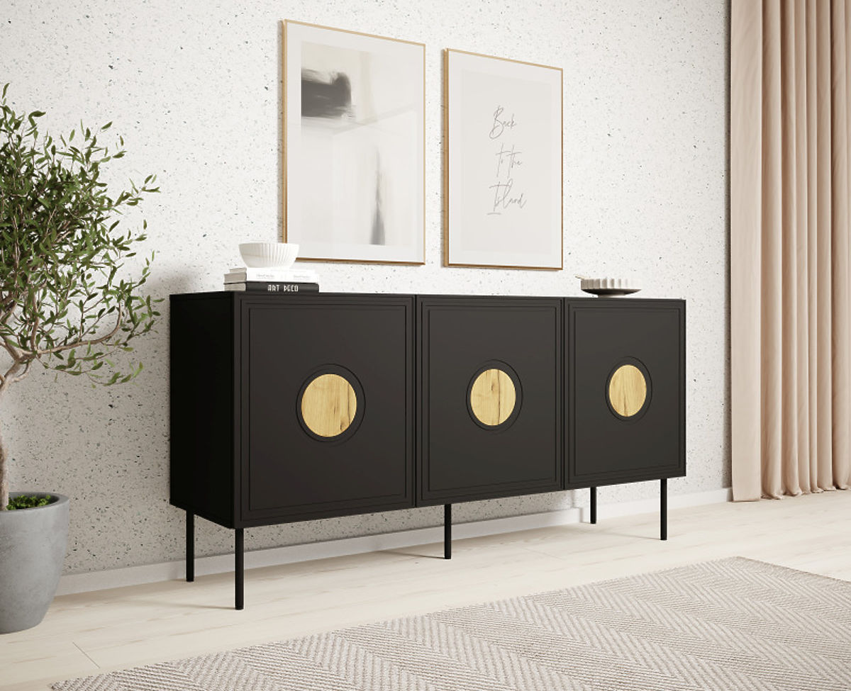 Schwarze Kommode mit PUSH-CLICK-System und Eiche Craft. .. mehr