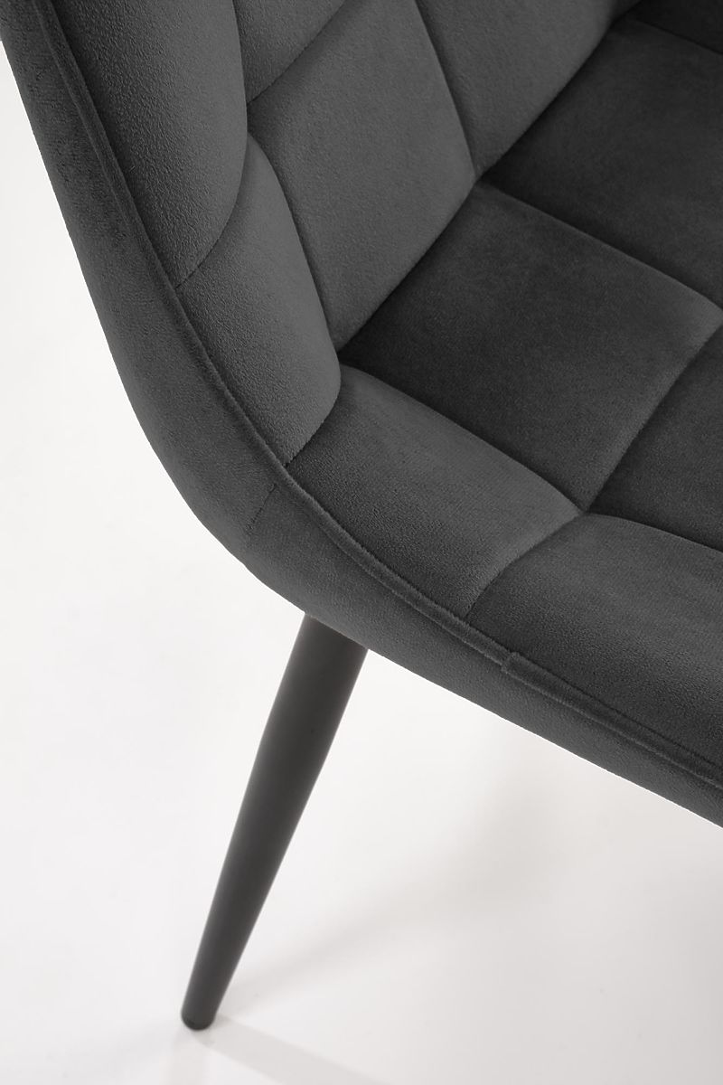 Schwarzer Samtstuhl mit pulverbeschichtetem Stahlrahmen. .. mehr
