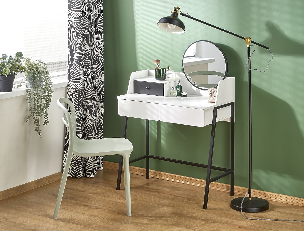 Konsole AGNES in weiß und schwarz mit Spiegel und Stahl. .. mehr