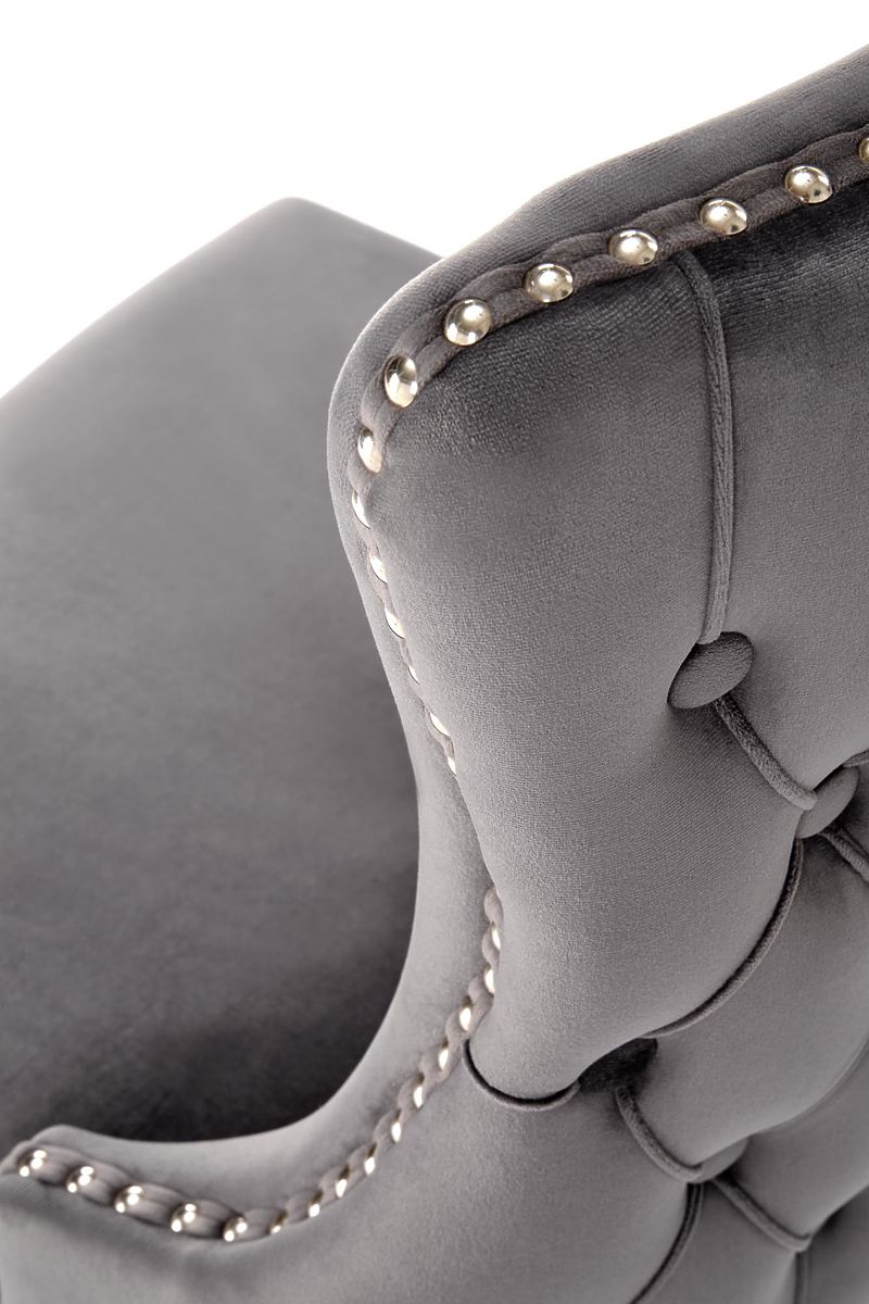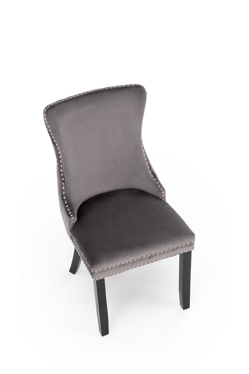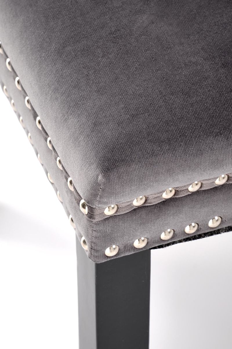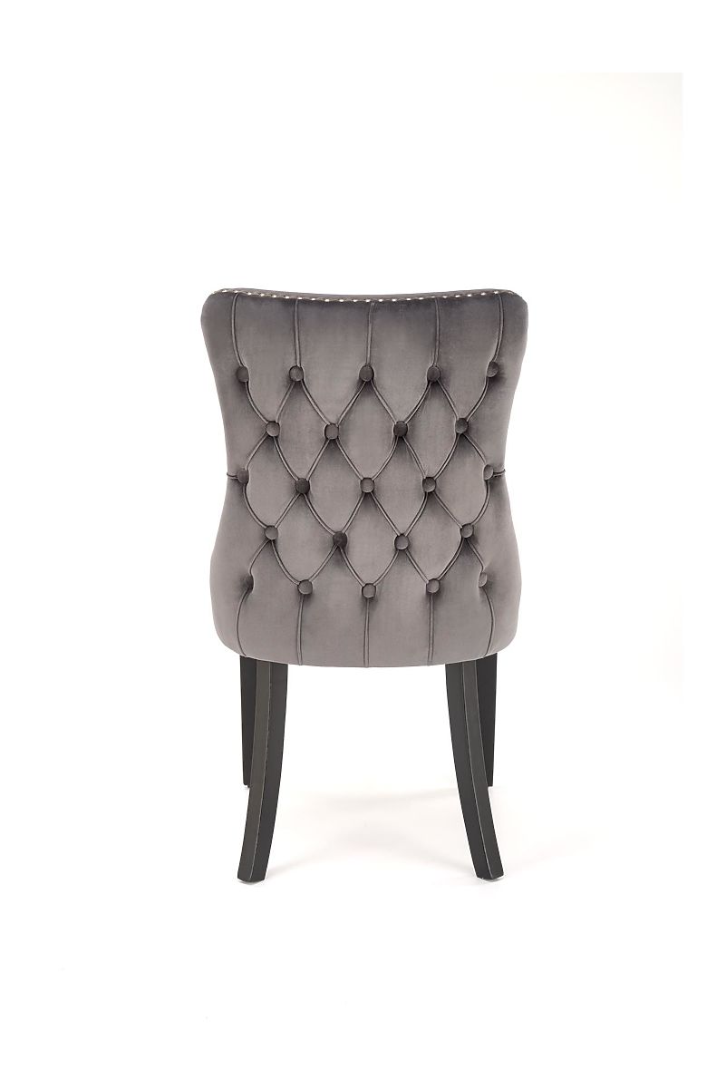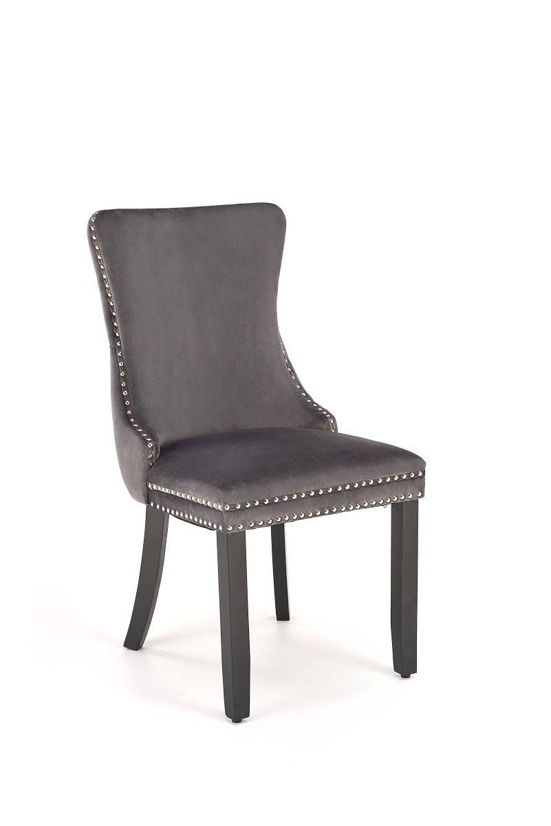 Stuhl aus Massivholz und Samtstoff in Grau. .. mehr