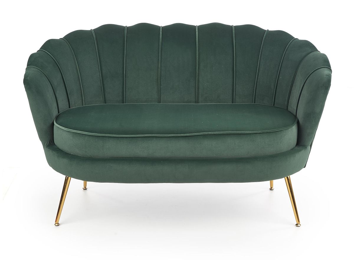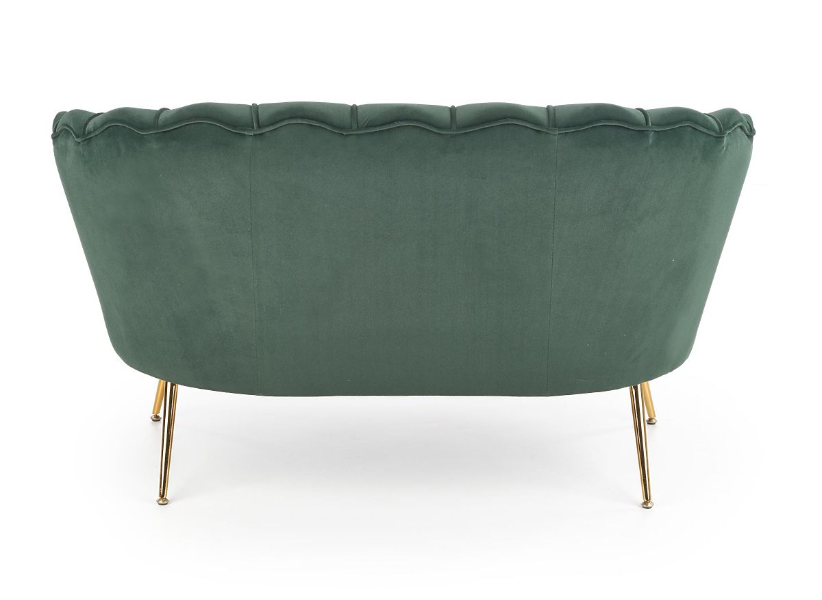 Relaxsessel mit dunkelgrüner Polsterung und goldenen Beinen. .. mehr