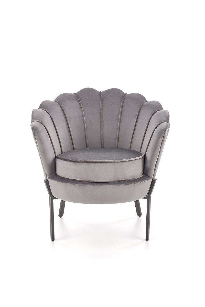 Grauer Relaxsessel ANGELO aus Samt und Stahl. .. mehr
