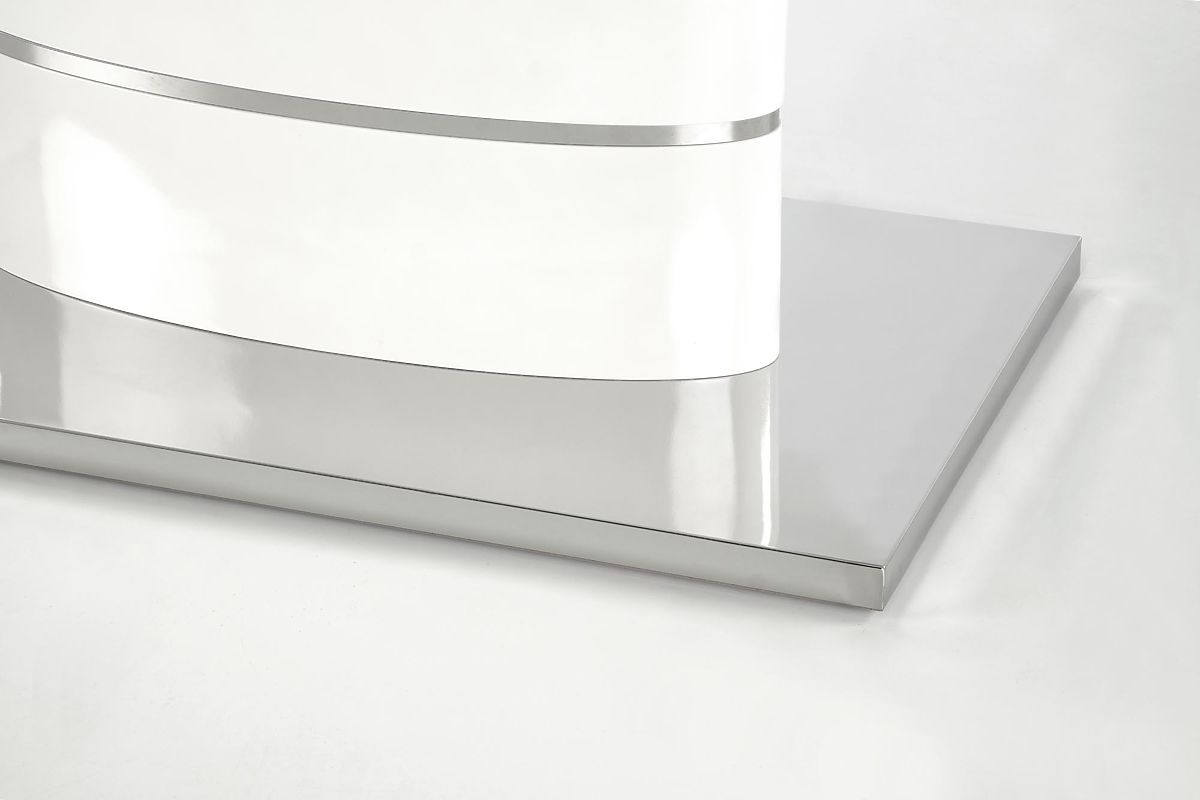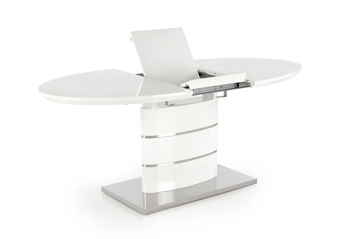 Ausziehbarer Tisch aus lackiertem MDF und Edelstahl. .. mehr
