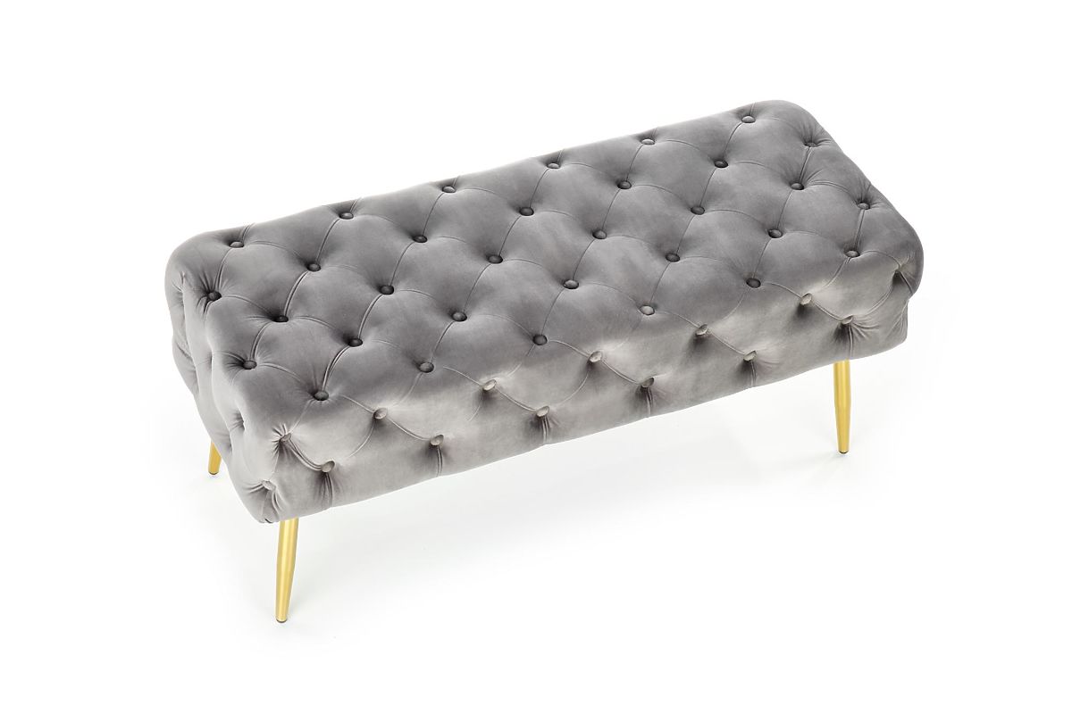 Gepolsterte Bank aus Samt mit verchromten Stahlbeinen. .. mehr