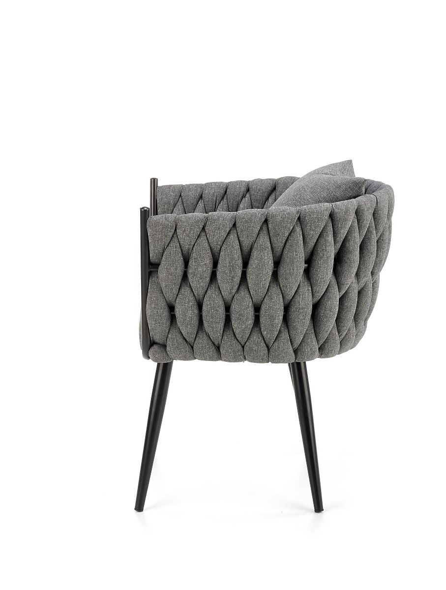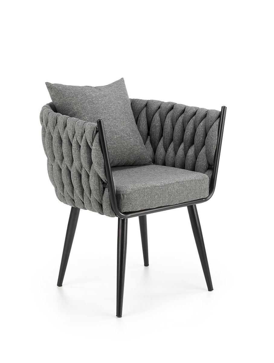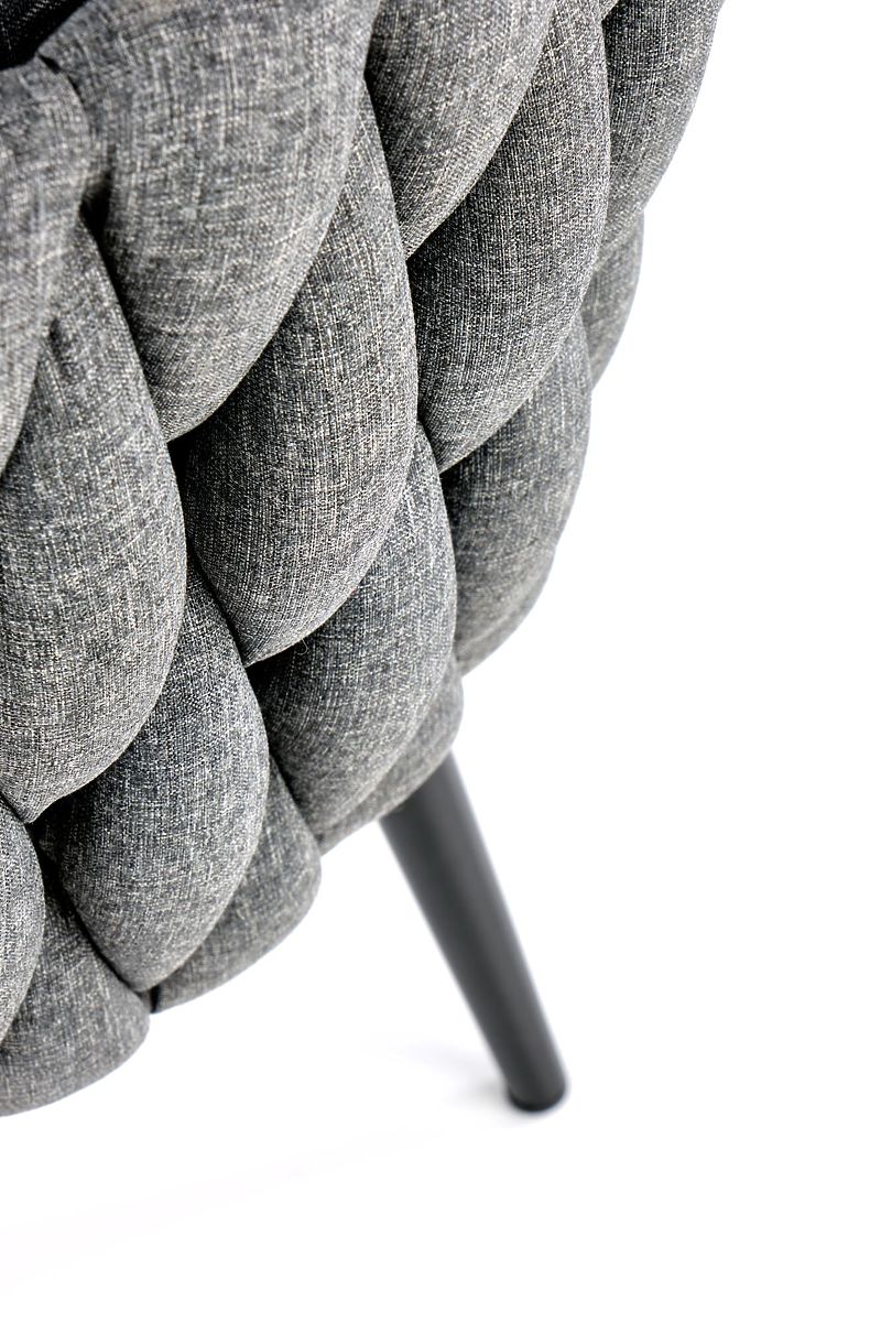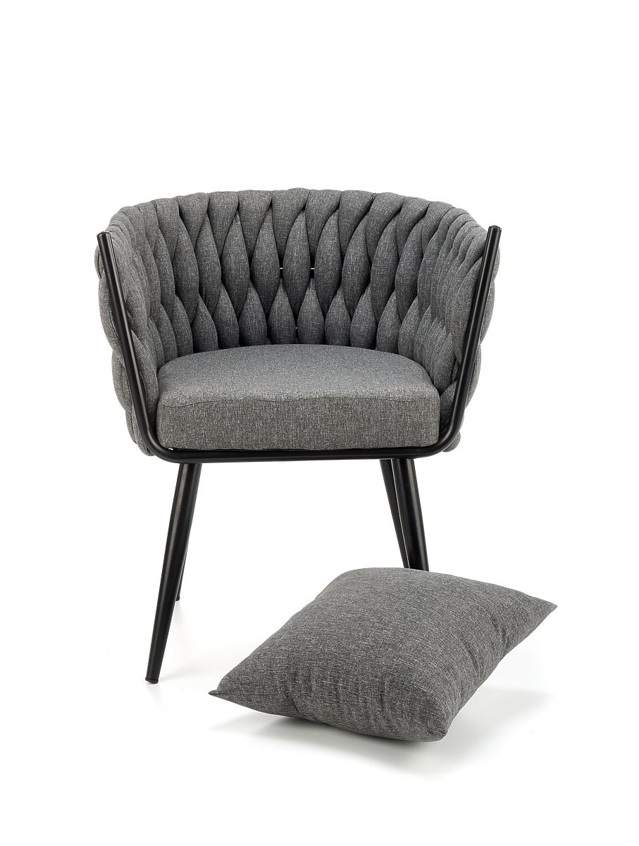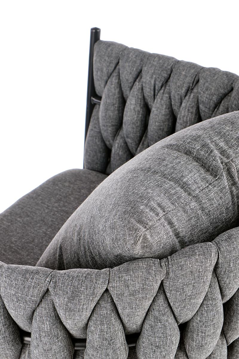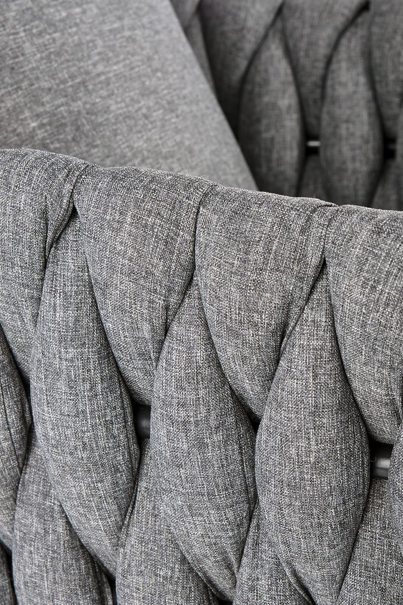 Relaxsessel aus grauem Stoff und Stahl. .. mehr
