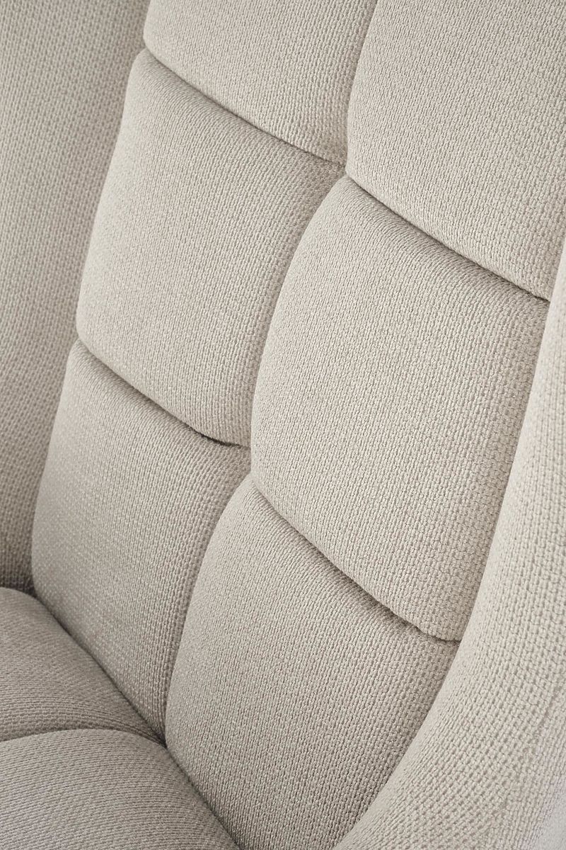 Beiger Relaxsessel aus Stoff und Stahl. .. mehr