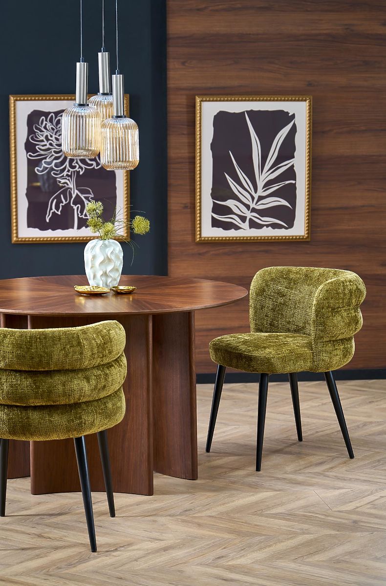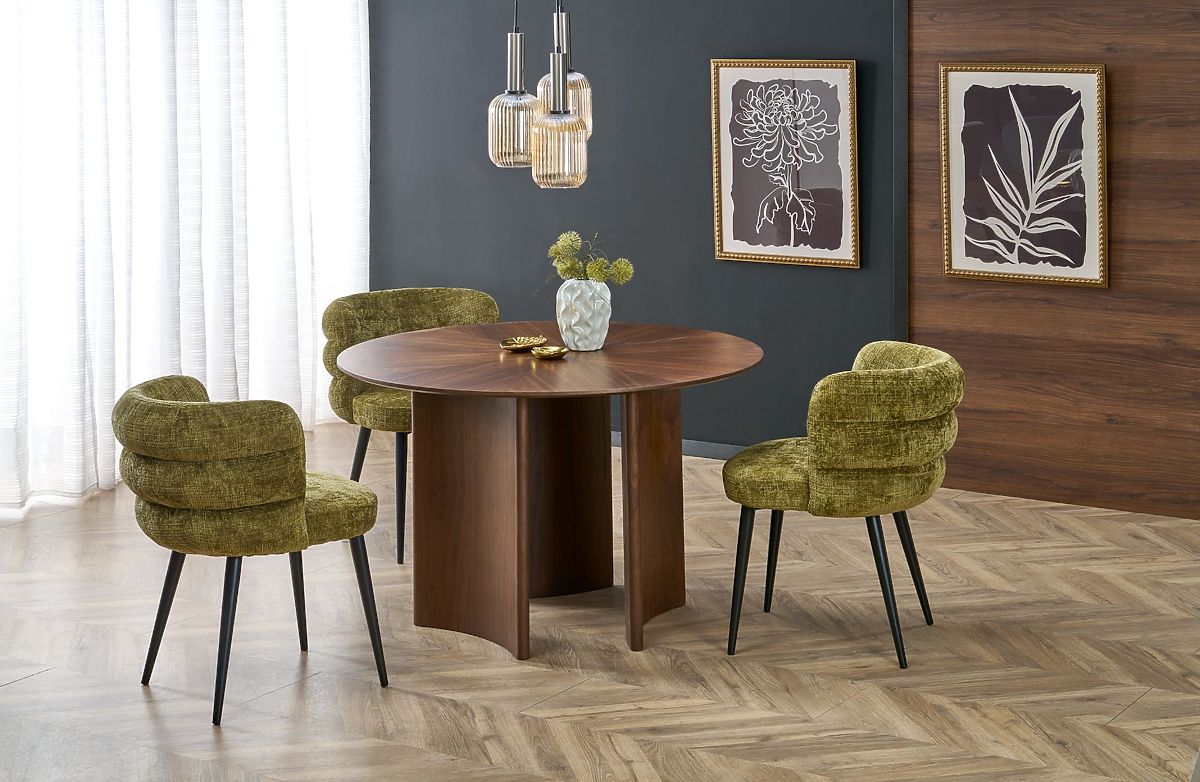 Runder Tisch CALDO aus MDF und Naturfurnier in Walnussfarbe. .. mehr