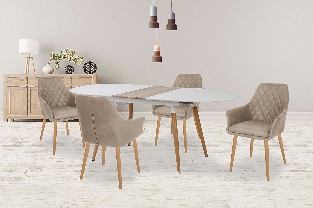 Luka-home.de » Esszimmer und Küche / Esstische / Ausziehbarer Tisch CALIBER weiß / Eiche San Remo (1p=1Stk)