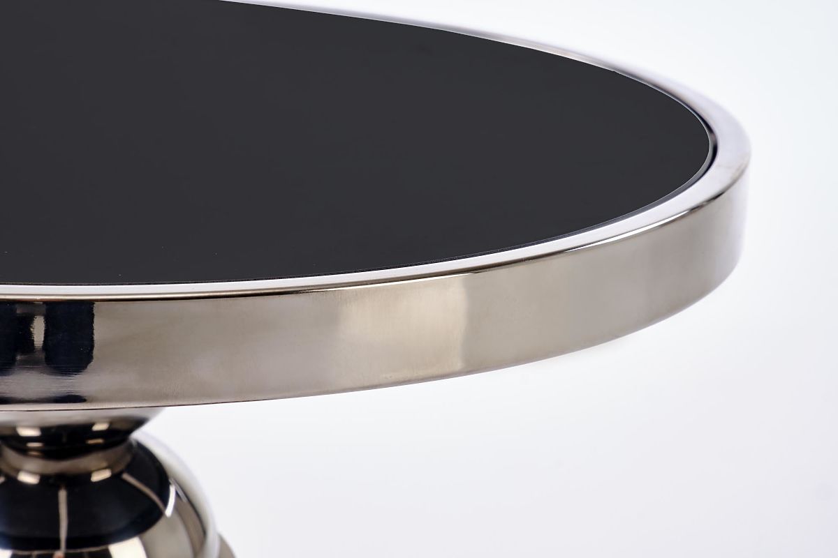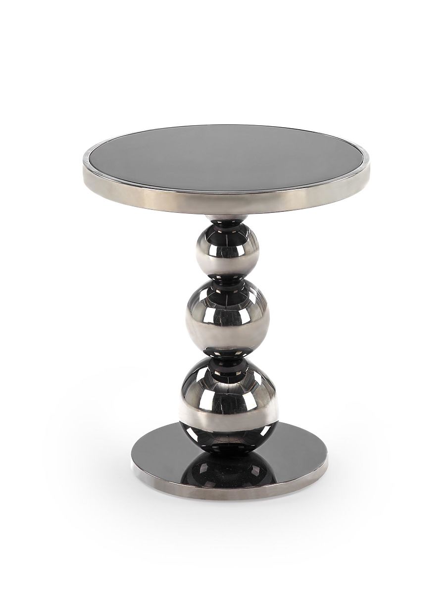 Runder Couchtisch aus Glas und Edelstahl in Schwarz-Silber. .. mehr