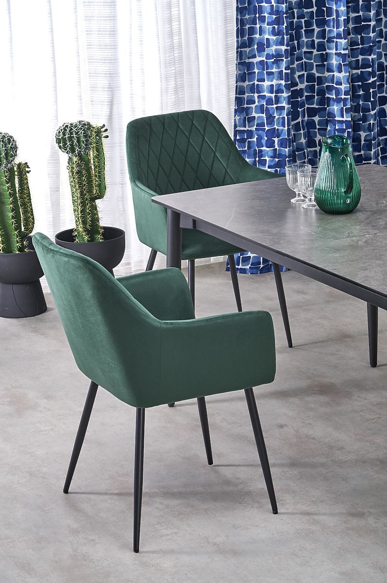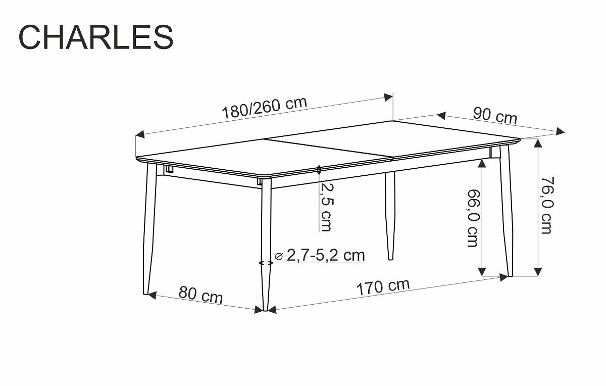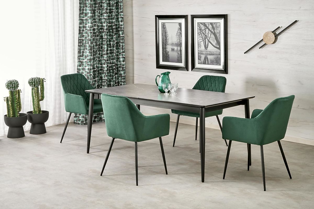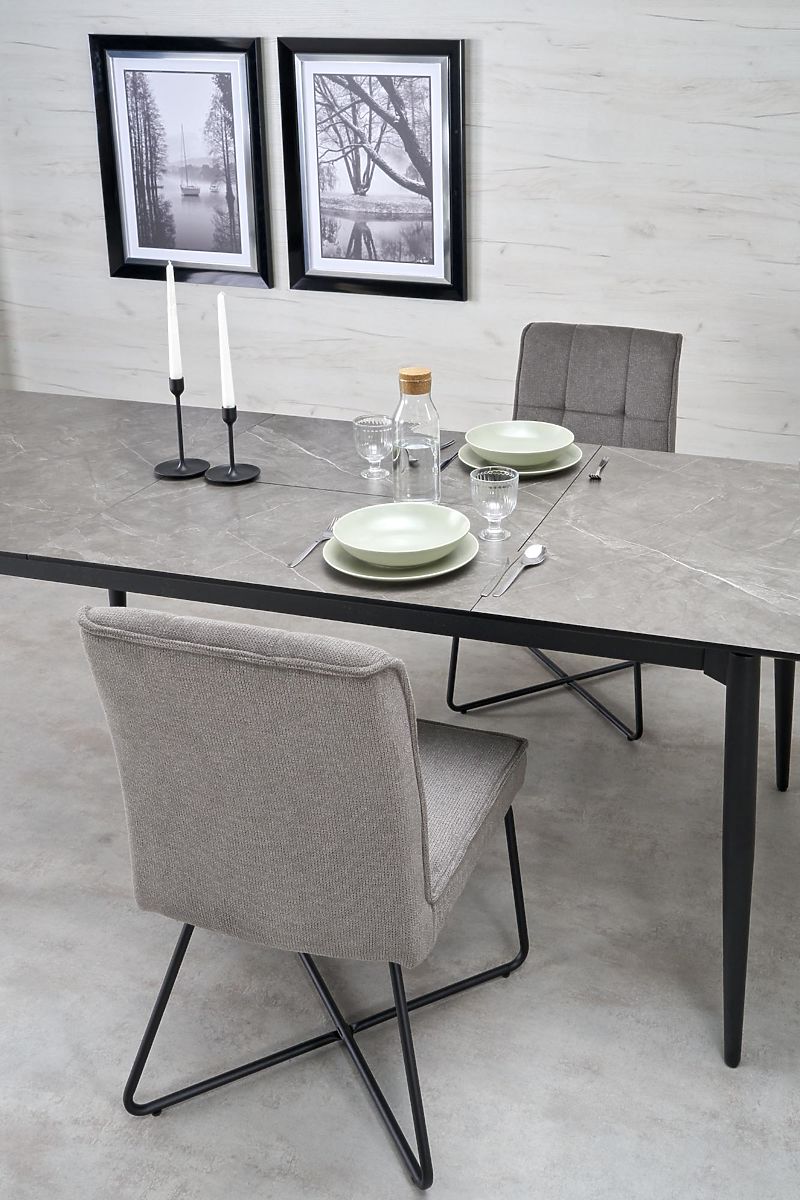 Luka-home.de » Esszimmer und Küche / Esstische / CHARLES ausziehbarer Tisch, Platte - grauer Marmor, Beine - schwarz