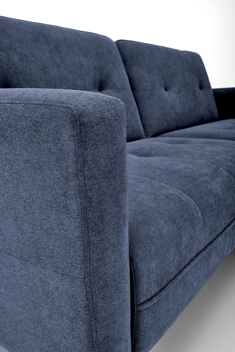 Ausziehbares Sofa mit Fußhocker in blauem Stoff. .. mehr