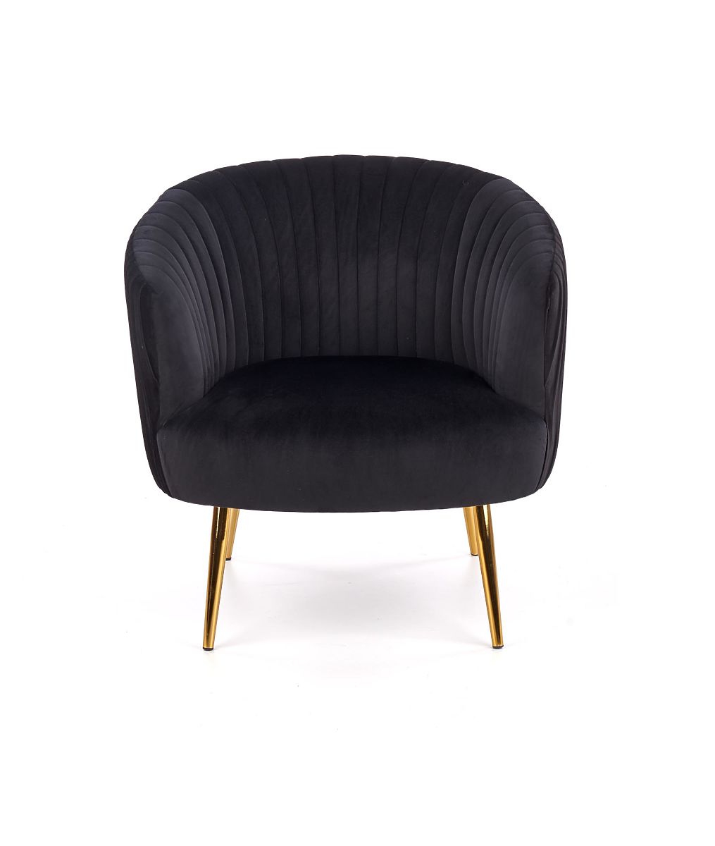 Schwarzer Relaxsessel mit goldenen Beinen. .. mehr