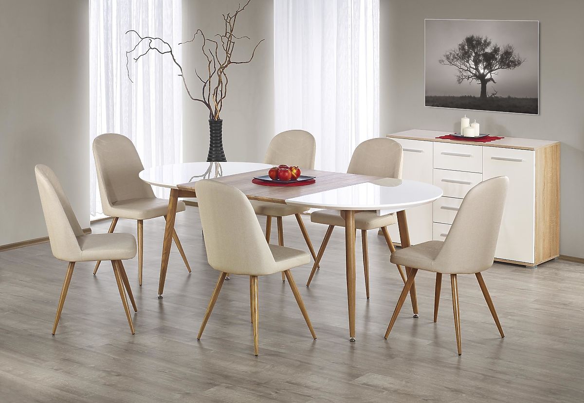 Luka-home.de » Esszimmer und Küche / Esstische / EDWARD ausziehbarer Tisch Honigeiche / Weiß; Beine: Honigeiche (2p=1Stk)