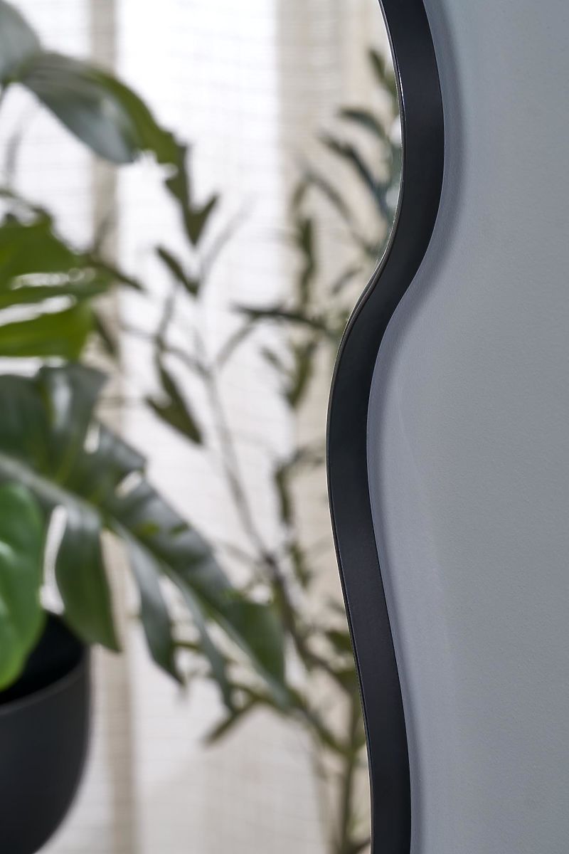 Schwarzer Wandspiegel mit gebürstetem Eisenrahmen. .. mehr