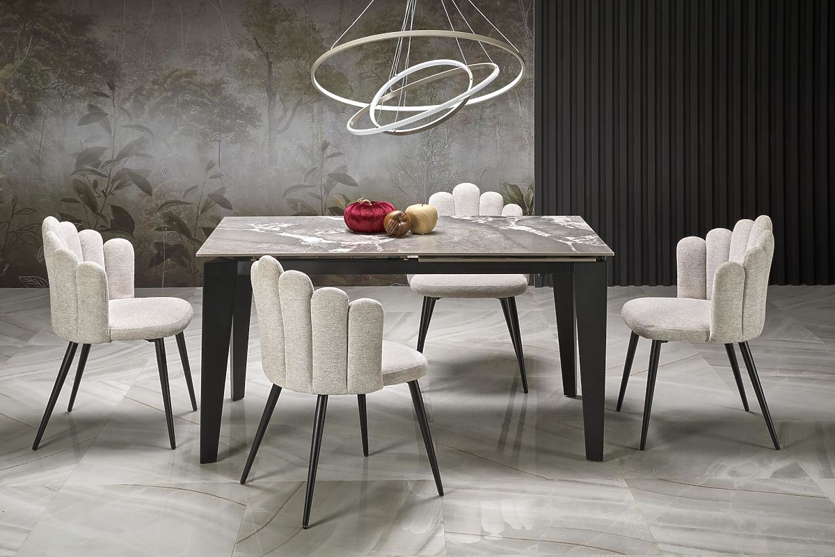 Luka-home.de » Esszimmer a küche / Hochstühle tische / FELIX ausziehbarer Tisch, Platte - grauer Marmor, Beine - schwarz (2p=1Stk)