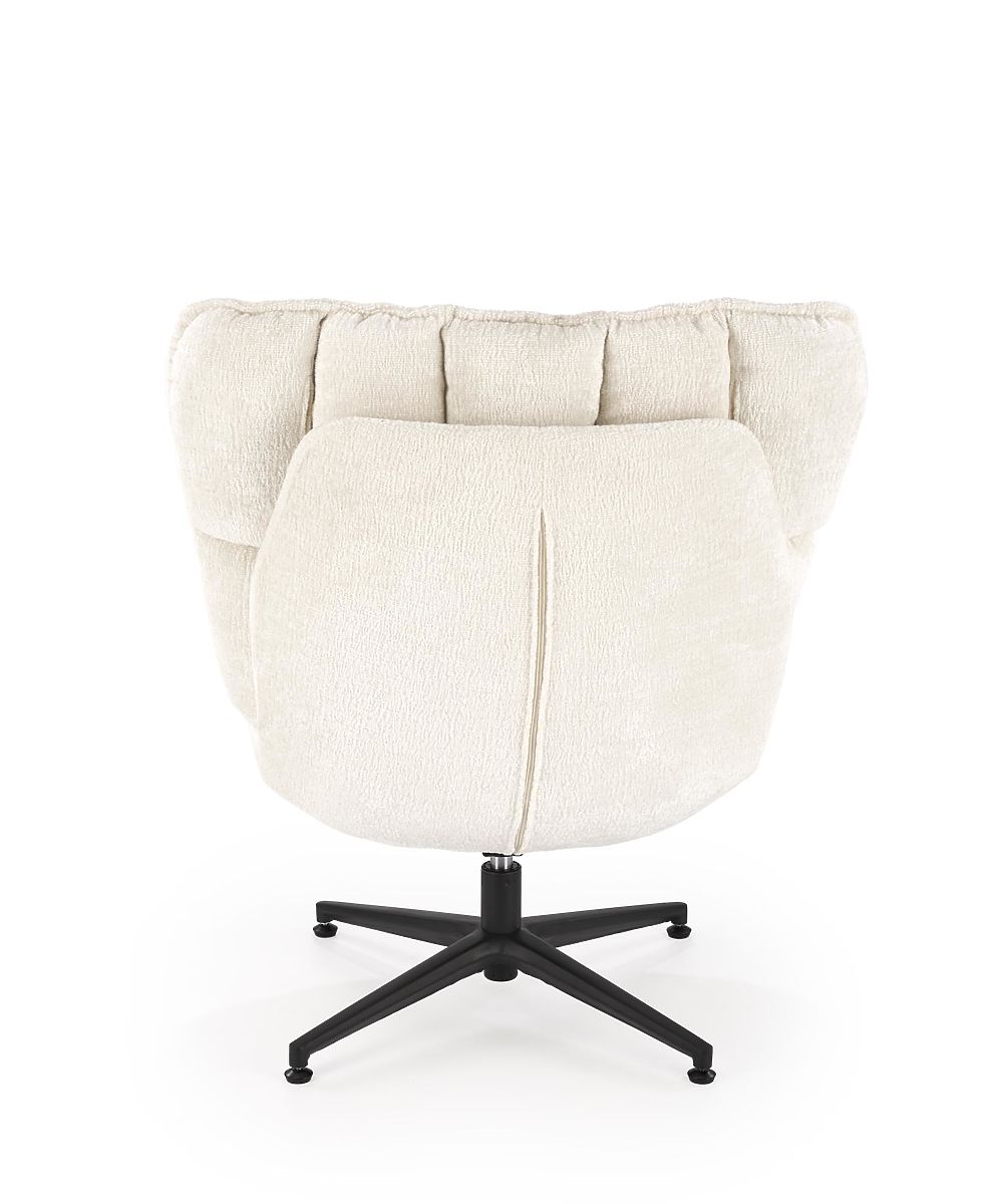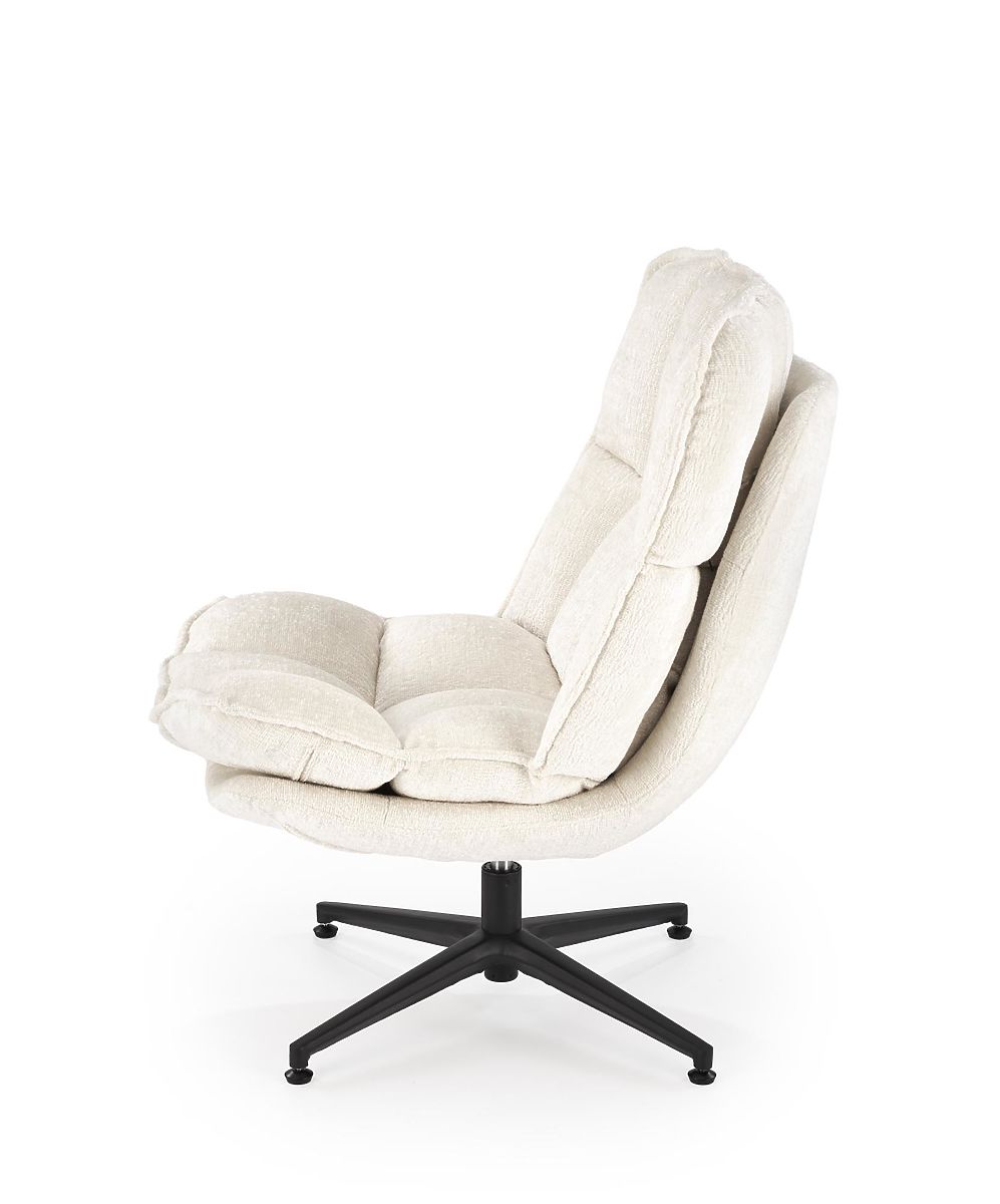 Cremefarbener Relaxsessel aus Stoff und Stahl. .. mehr