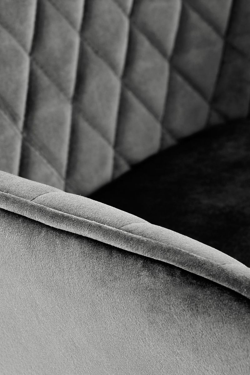 Grauer Barhocker aus Samtstoff und Stahl. .. mehr