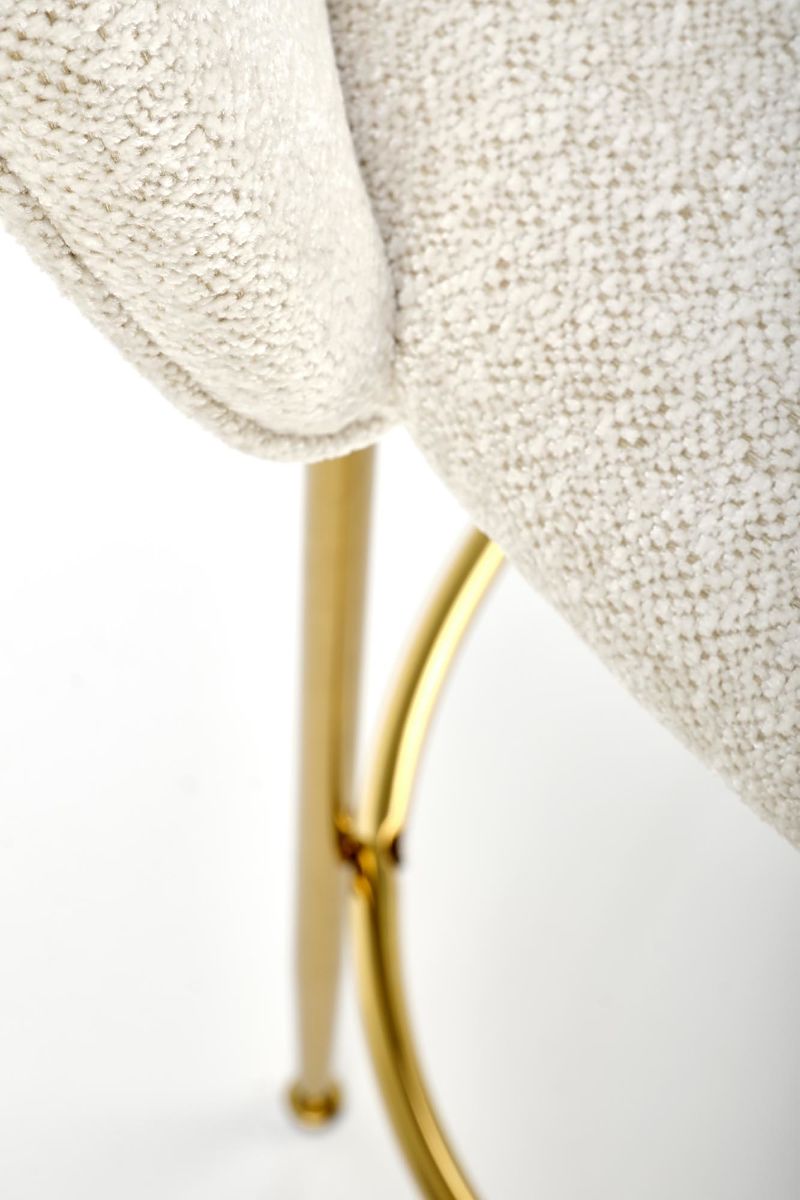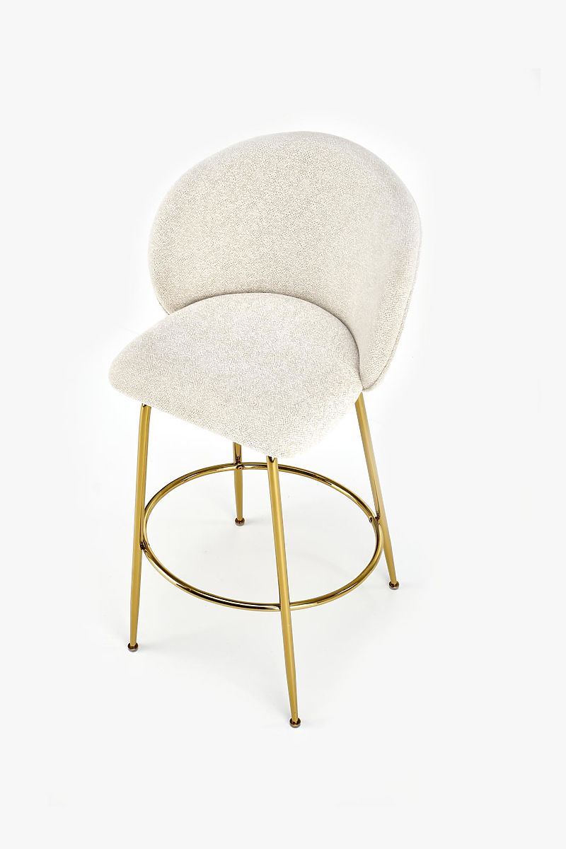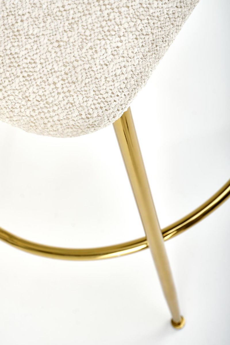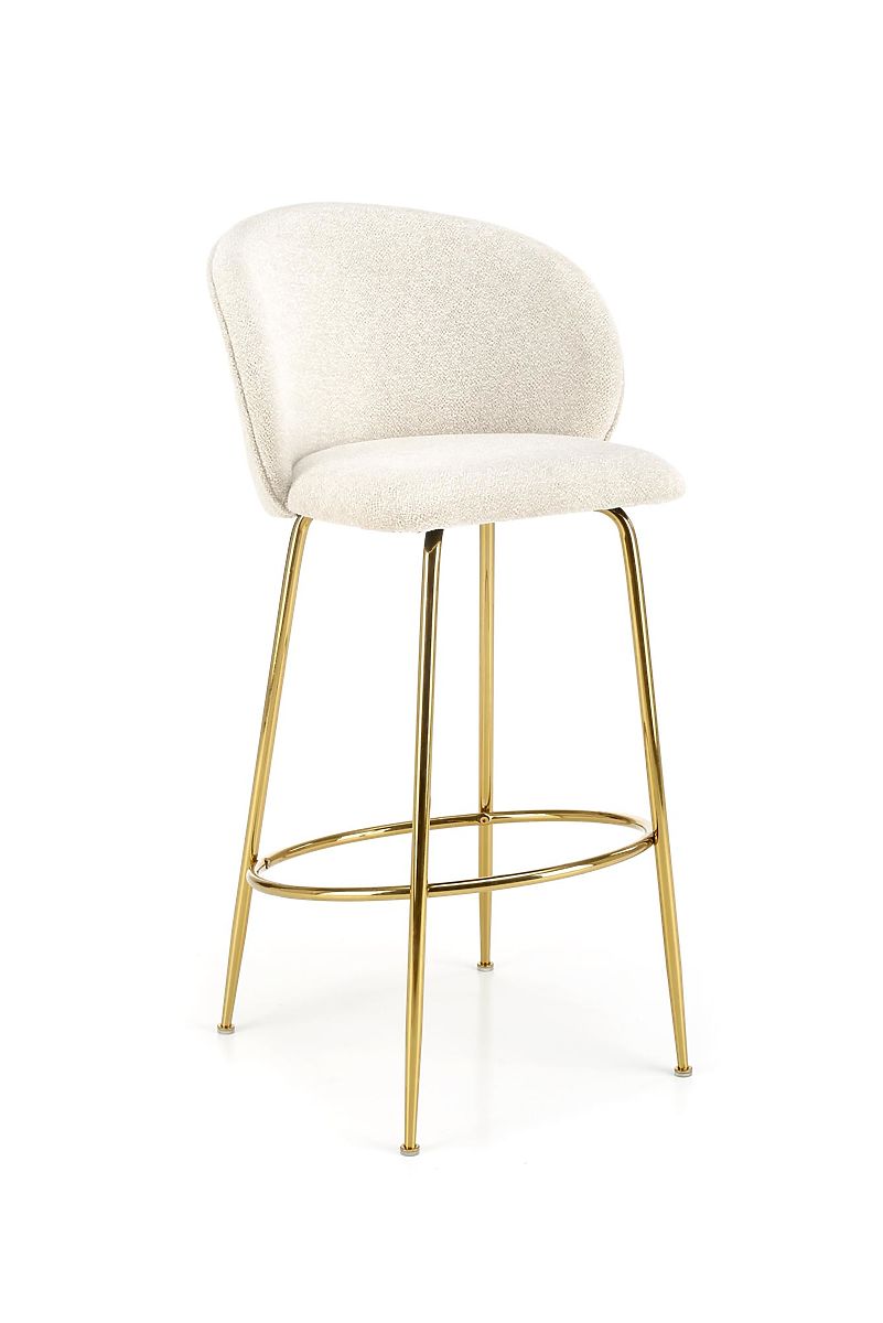 Barhocker aus Stoff und verchromtem Stahl in Creme und Gold. .. mehr