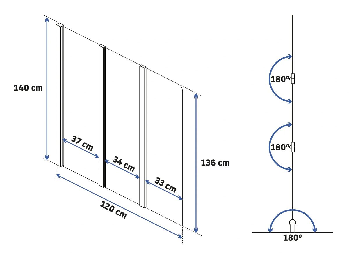 Die hochwertige faltbare Badewannenabtrennung Rea Agat 120 bietet die ideale Verbindung von Nutzen und Ästhetik. Das Modell, das am Rand der Badewanne montiert wird, verleiht dem Badezimmer einen einzigartigen Charakter. Dank der kompakten, harmonikaförmigen Konstruktion aus drei Gläsern ist sie die ideale Wahl für jedes Badezimmer. Die geringe Breite der einzelnen Glasscheiben der Agat-Abtrennung ermöglicht es, die Abtrennung an die Wand zu falten, sodass sie sehr wenig Platz einnimmt.