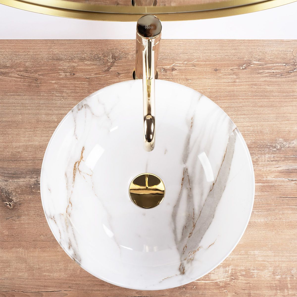 Wir präsentieren Ihnen ein modernes, einzigartiges Waschbecken mit einem ungewöhnlichen Muster. Das Waschbecken Stella bringt Eleganz in Ihr Badezimmer und kann entweder ein herausragendes Element oder ein dezentes Accessoire sein. Wenn Sie auf den Glanz dieser edlen Farbe setzen, wird der Endeffekt sicherlich Leichtigkeit und Originalität gewinnen.\n\nDas Waschbecken ist zur Montage auf einer Platte oder einem Schrank geeignet. Es besteht aus hochwertiger Sanitärkeramik. Dank eines speziellen Herstellungsverfahrens ist es langlebig und leicht zu reinigen.\n\nPassende Armaturen und Siphons für das Waschbecken finden Sie in unserem Shop, wir laden Sie zum Kauf ein!