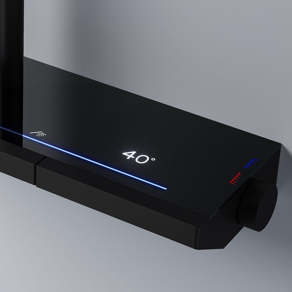 Das Set ist mit einem Thermostat, einem intuitiven Bedienfeld mit beleuchteten Tasten und einem modernen LED-Display ausgestattet, das über die Wassertemperatur informiert – ohne Anschluss an Strom.
