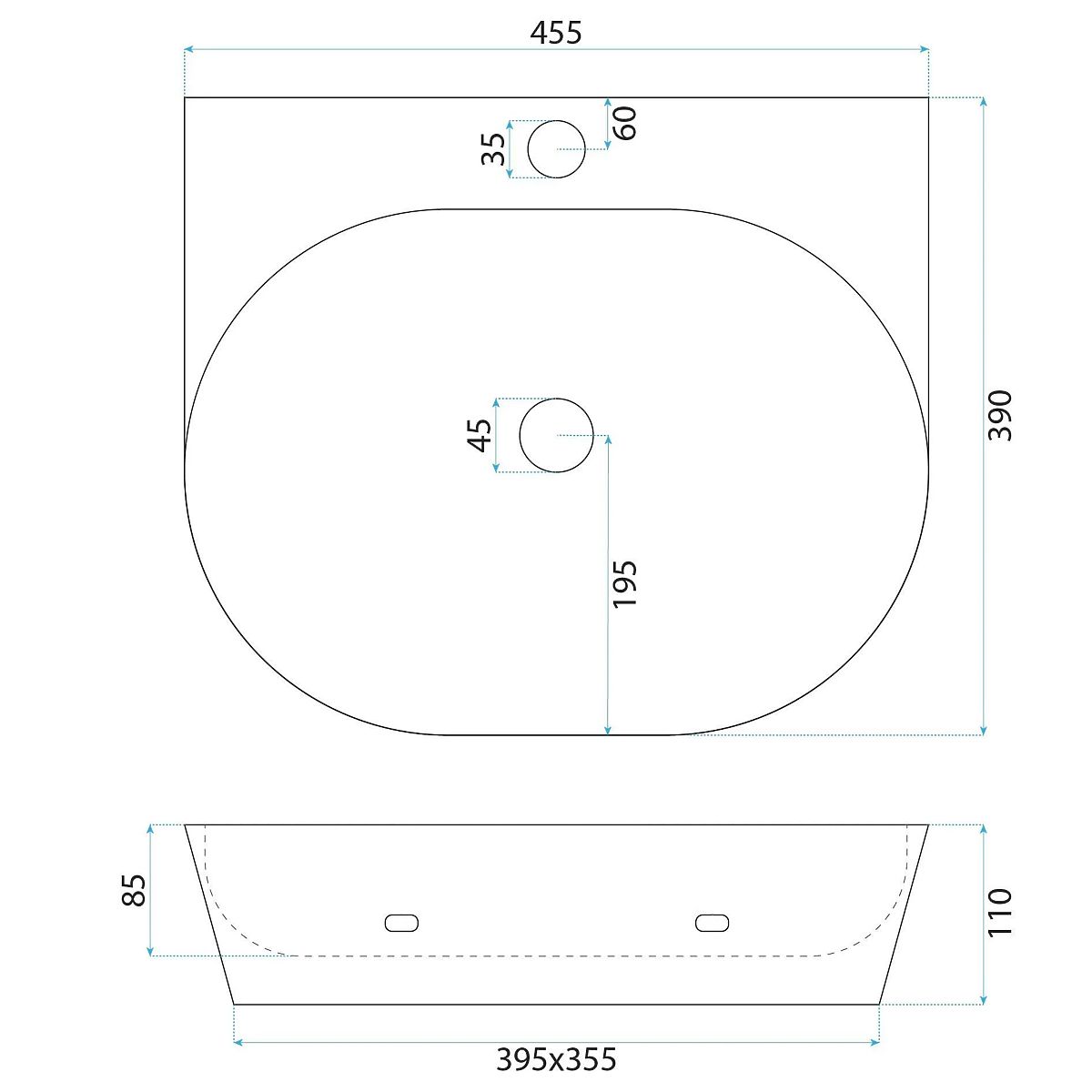 Wand- / Tischwaschbecken Rea Kim 46