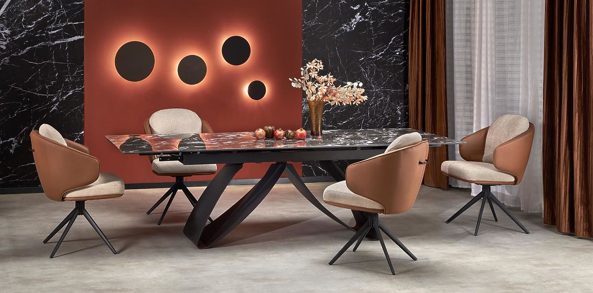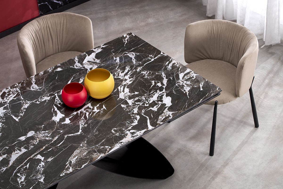 Luka-home.de » Esszimmer a küche / Hochstühle tische / HILARIO ausziehbarer Tisch, Platte - schwarzer Marmor, Beine - schwarz (3p=1Stk)