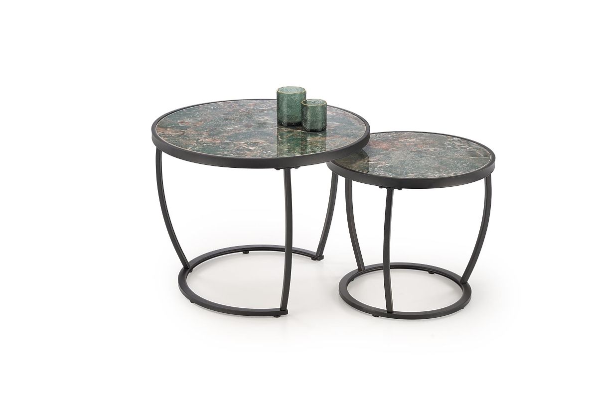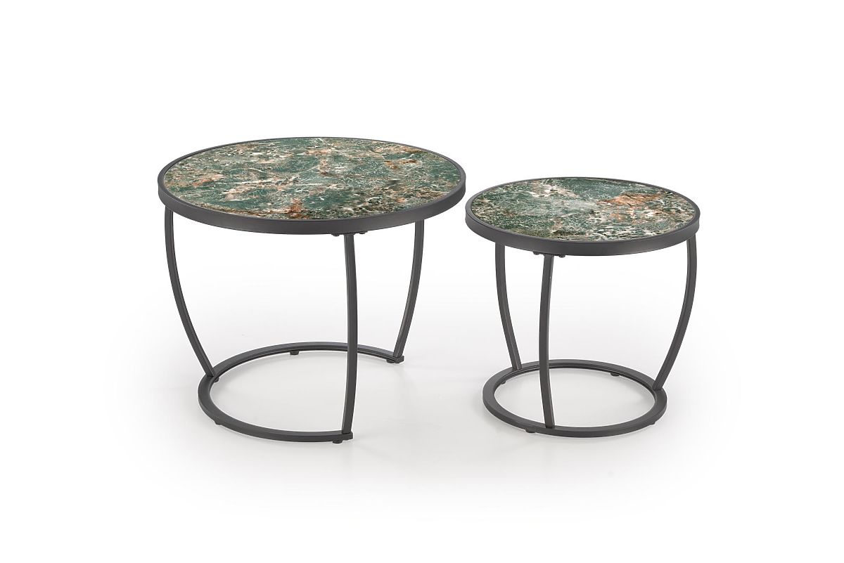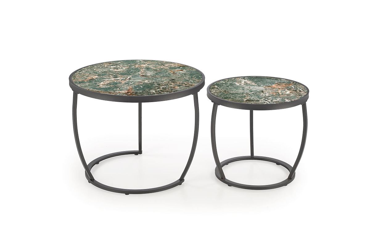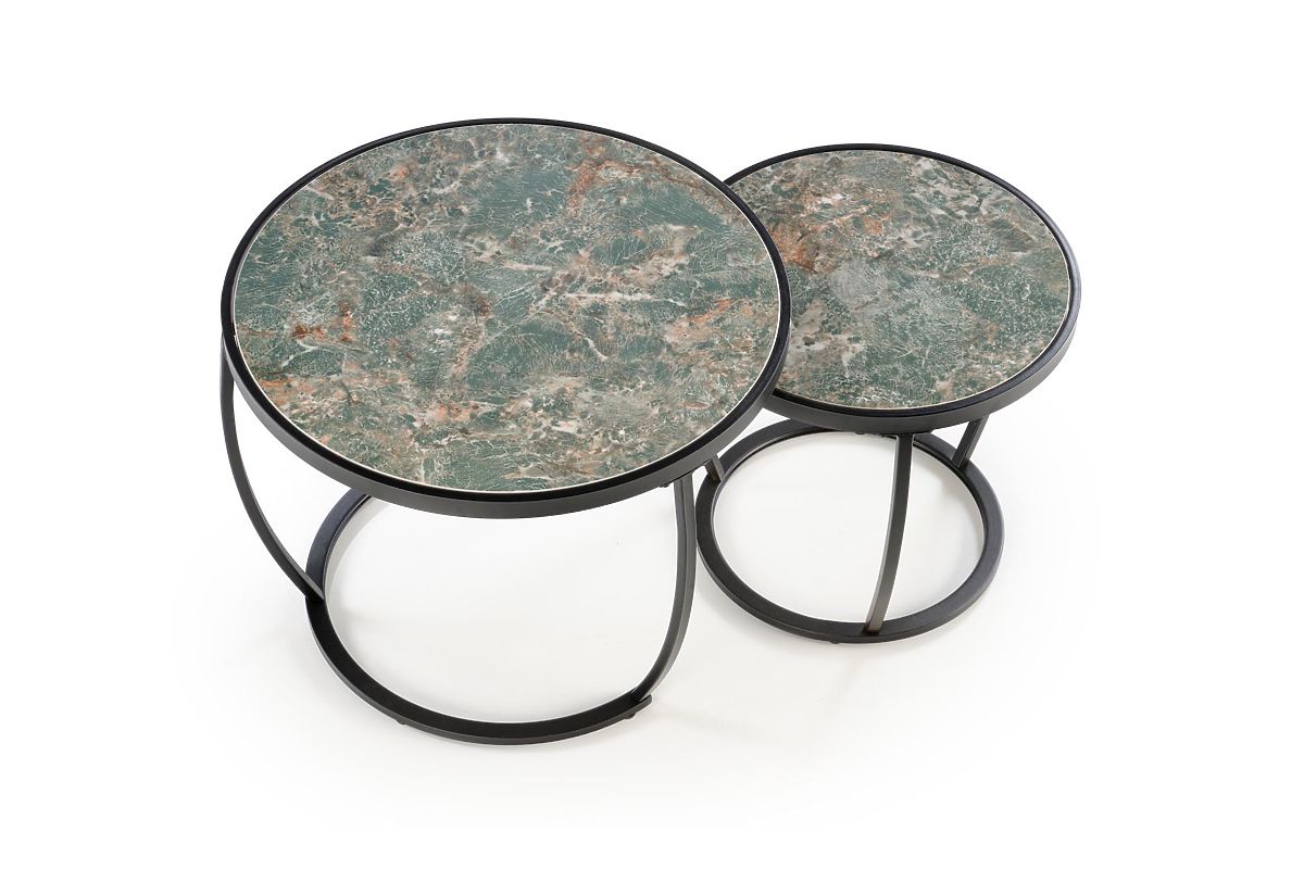 Luka-home.de » Tischtennisplatten a tische / Konferenz tische / INES Set aus 2 Tischen, grüner Marmor / schwarz (1p=1set)