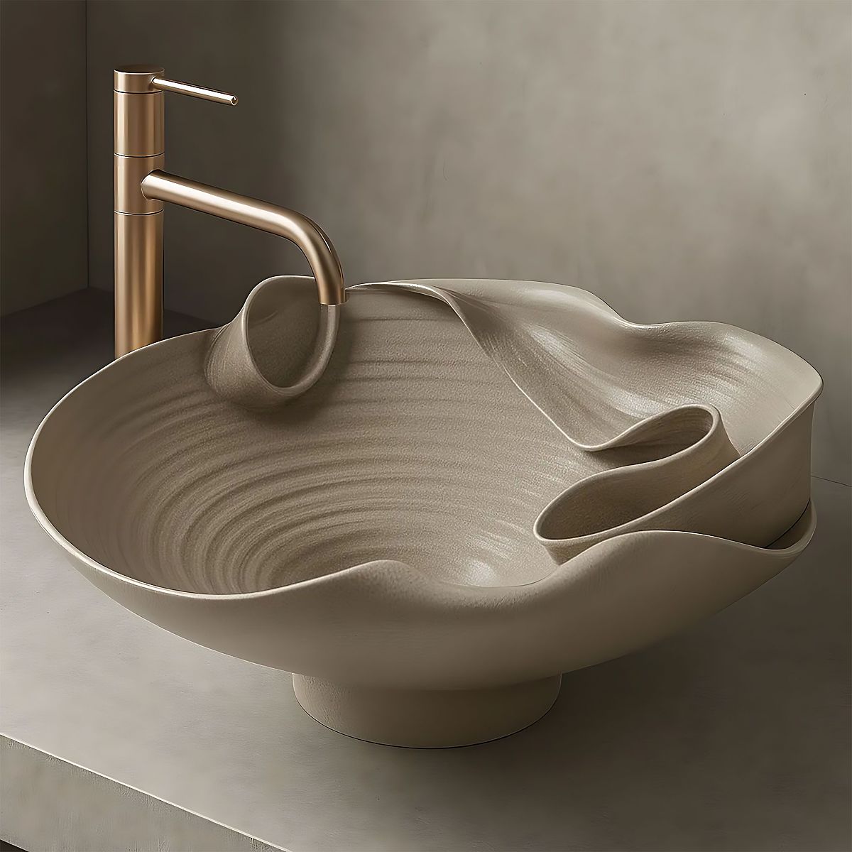 Das vorgestellte Waschbecken ist eine Neuheit im Angebot der Marke Rea – Badezimmer mit Fantasie, entworfen für Personen, die außergewöhnliche Formen und authentisches Handwerk suchen. Es gehört zur Kollektion Hand Made Art – einer Serie, in der jedes Stück mit voller Sorgfalt für Details handgefertigt wird. Das Fehlen von Serienproduktion stellt sicher, dass jedes Waschbecken sich leicht in Form und Textur unterscheidet und seinen einzigartigen Charakter bewahrt. Dieses Modell ist eine kühne Form, inspiriert von der Bewegung und Spannung des Materials. Spiralbrüche erinnern an natürliche Verformungen von Felsen, Wellen oder gerollte Keramikplatten. Die markante, fast skulpturale Form macht das Waschbecken zum zentralen Punkt des Badezimmers – nicht nur funktional, sondern auch künstlerisch. Die rohe Textur, die grau-beige Farbe und die matte Oberfläche bilden ein harmonisches Ganzes mit modernen Materialien: Beton, Stahl, Stein und Glas. Es ist ein Angebot für diejenigen, die mehr erwarten – Originalität, Qualität und eine Form, die nicht gleichgültig bleibt.