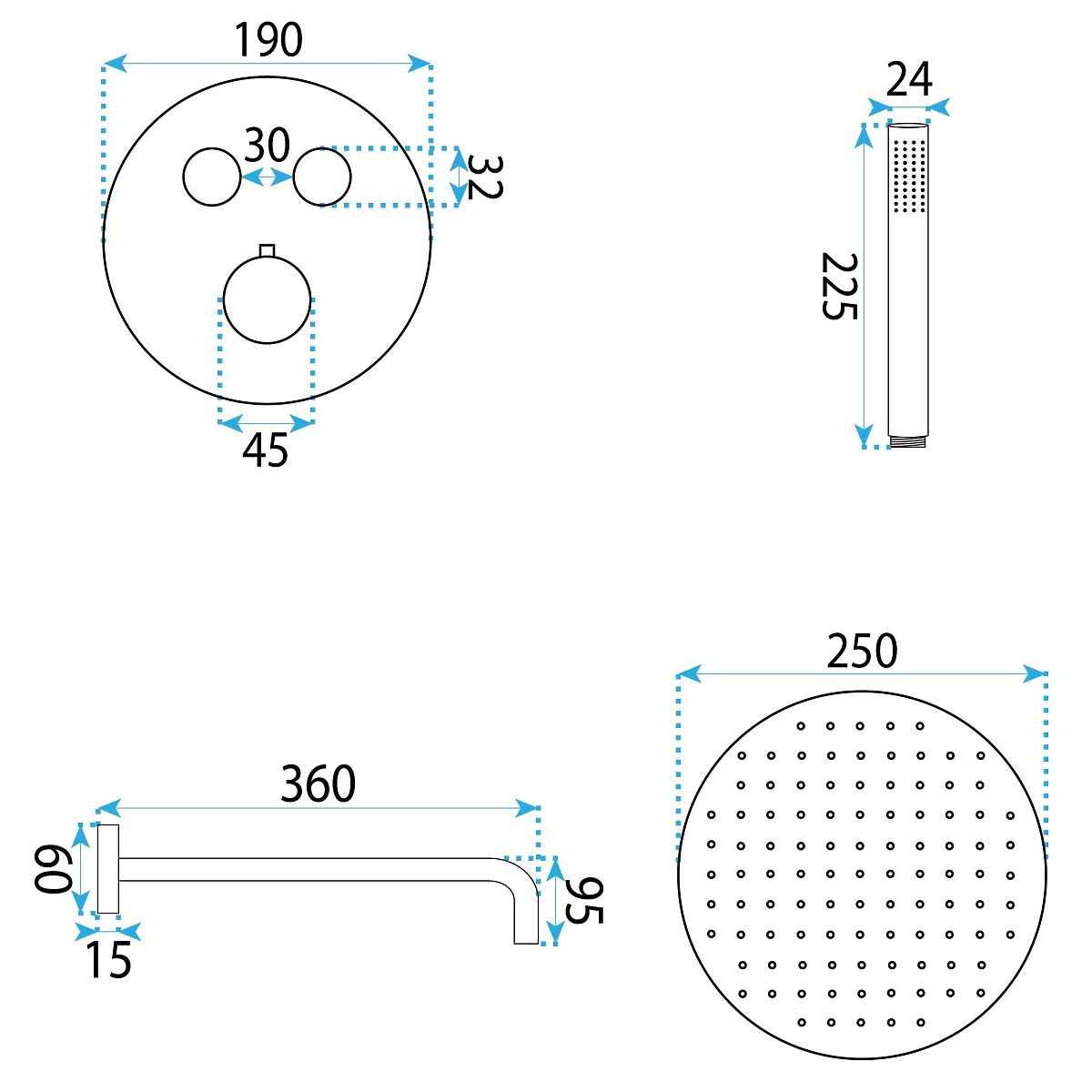 Unterputz-Duschset mit Thermostat Rea Lungo Diamond Chrom+ BOX