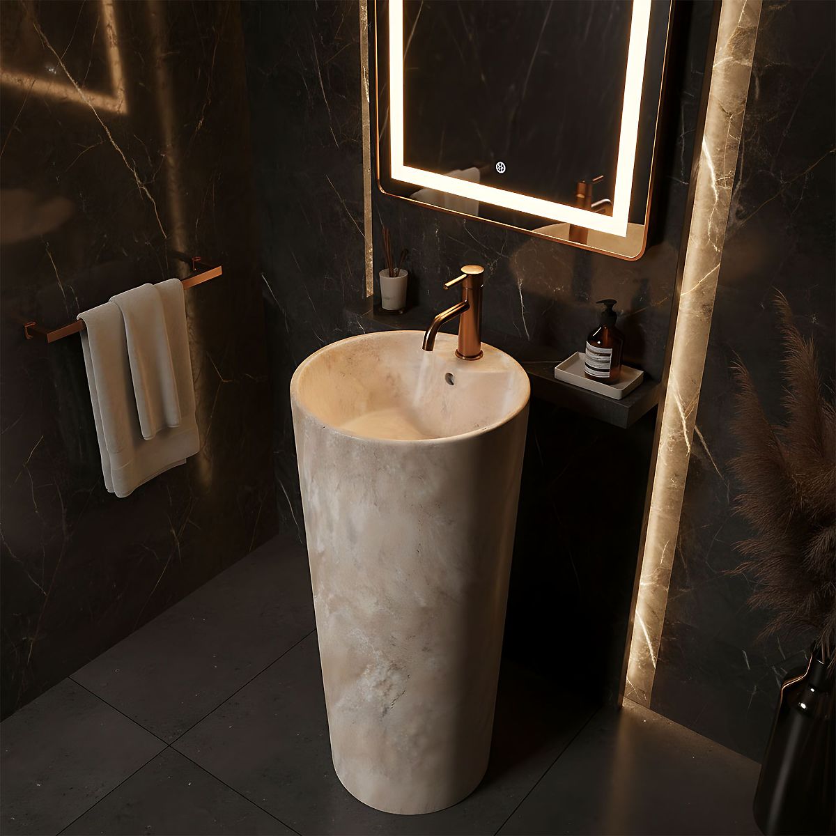 Entdecken Sie luxuriöses und einzigartiges Design mit dem freistehenden Waschbecken Rea Blanka Savana Matt. Diese außergewöhnliche Verbindung von roher Eleganz und Funktionalität verleiht Ihrem Badezimmer den Charakter eines glamourösen Spas. Hergestellt aus hochwertigster Sanitärkeramik, wird das Bodenwaschbecken Rea nicht nur zum zentralen Punkt Ihres Badezimmers, sondern sorgt auch für Zuverlässigkeit und Langlebigkeit über viele Jahre. Montageart: Freistehend – ermöglicht die Schaffung einer luxuriösen und zentralen Waschzone. Einzigartiges Design: Die Oberfläche Savana Matt, die Naturstein imitiert, verleiht dem Interieur Eleganz und Glamour. Material: Höchste Qualität der Sanitärkeramik garantiert außergewöhnliche Langlebigkeit und Widerstandsfähigkeit gegen Beschädigungen. Einfache Pflege: Die matte Oberfläche ist nicht nur schön, sondern auch leicht im täglichen Gebrauch zu pflegen. Praktische Anwendung: Es verfügt über eine Standardöffnung für die Armatur, was die Auswahl und Montage erleichtert. Das Waschbecken Rea Blanka Savana Matt ist die ideale Wahl für diejenigen, die ungewöhnliche und mutige Lösungen für ihr Badezimmer suchen. Perfekt in jedem Detail, kombiniert es die rohe Schönheit des natürlichen Steinlooks mit dem Komfort der Nutzung. Die robuste Keramikkonstruktion garantiert, dass dieses außergewöhnliche Bodenwaschbecken über viele Jahre hinweg eine Zierde Ihres Interieurs sein wird.