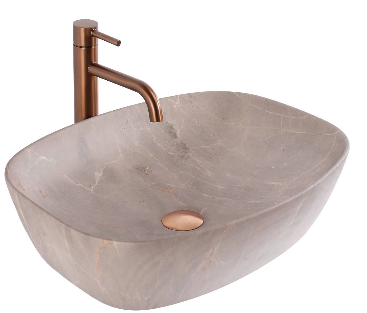 Dank der Technik, mit der die Oberflächenschicht des Waschbeckens hergestellt wurde, hat jedes Stück ein einzigartiges und unverwechselbares Muster.