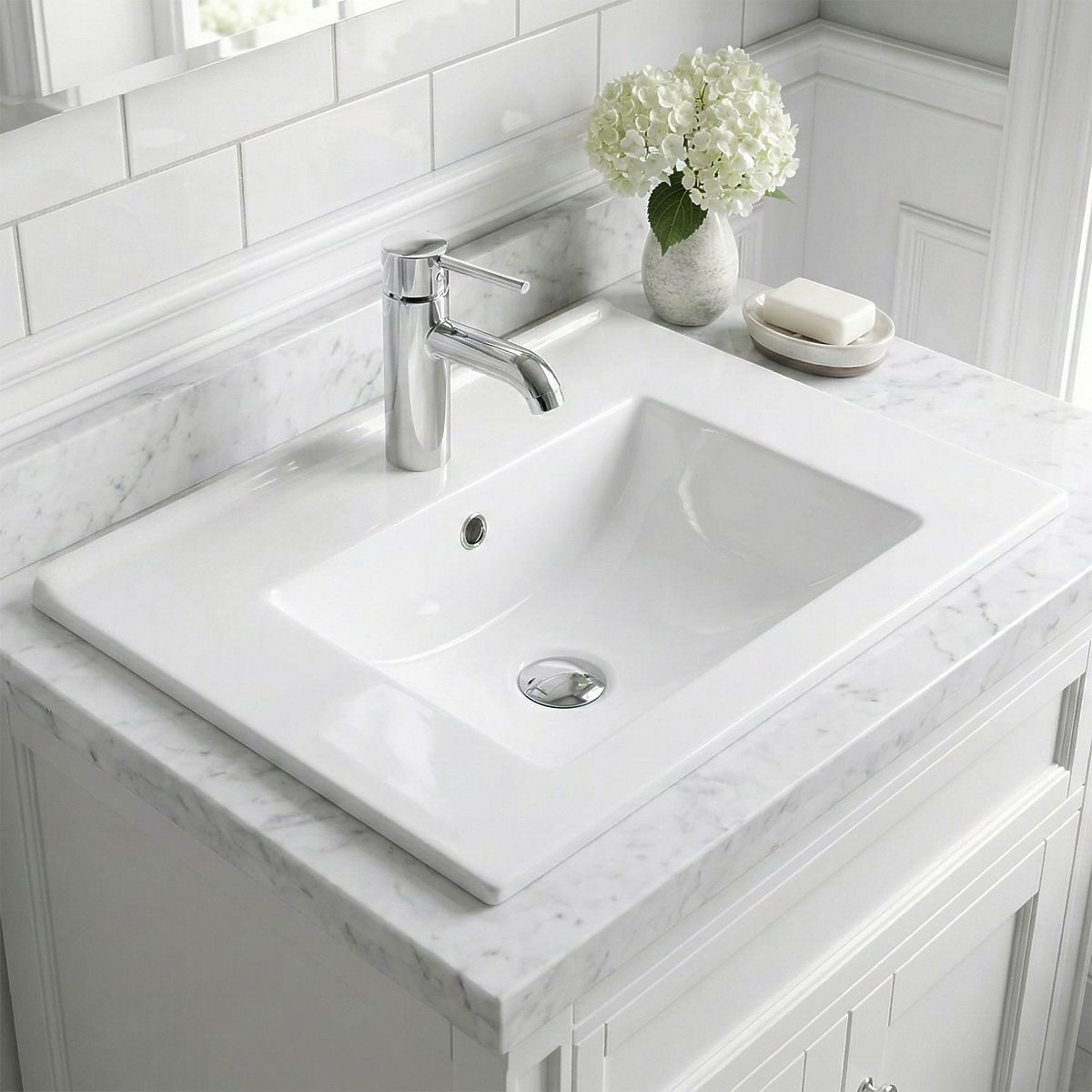 Wir präsentieren Ihnen ein Aufsatzwaschbecken, das Ihrem Badezimmer ein modernes Aussehen und hohe Funktionalität verleiht. Das Waschbecken ist aus hochwertiger Sanitärkeramik gefertigt. In unserem breiten Sortiment finden Sie Armaturen, Siphons und Stopfen. Wir laden Sie ein, sich mit unserem Angebot vertraut zu machen. Das Waschbecken ist für die Montage auf einer Platte oder einem Schrank durch Einsetzen in eine vorgefertigte Öffnung geeignet. Dieses Modell hat einen breiten Rand, der es ermöglicht, die Sauberkeit rund um das Waschbecken zu erhalten.