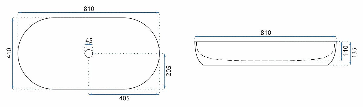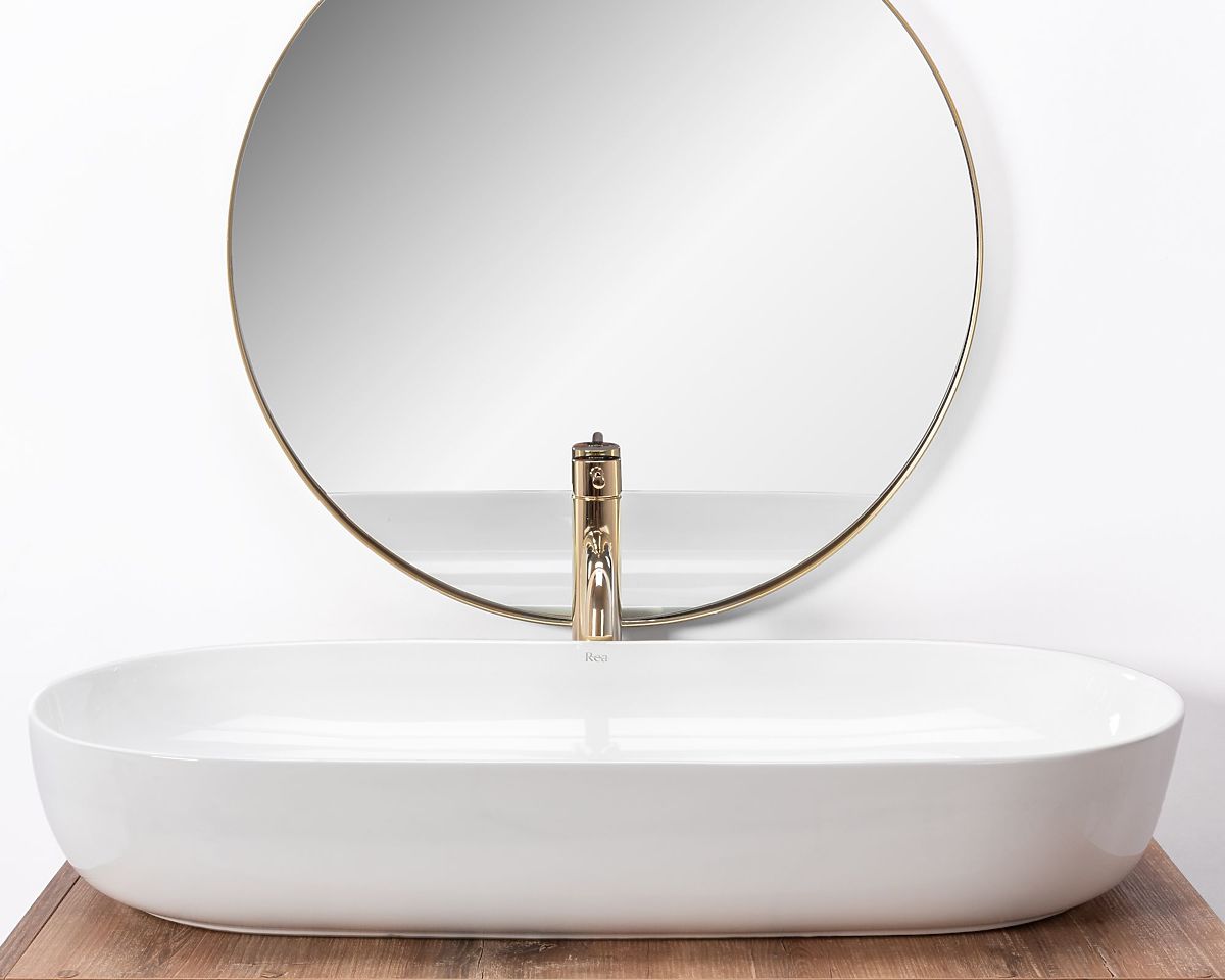 Das Waschbecken ist zur Montage auf einer Platte oder einem Schrank vorgesehen. Es besteht aus hochwertiger Sanitärkeramik. Dank eines speziellen Herstellungsverfahrens ist es langlebig und leicht zu reinigen.