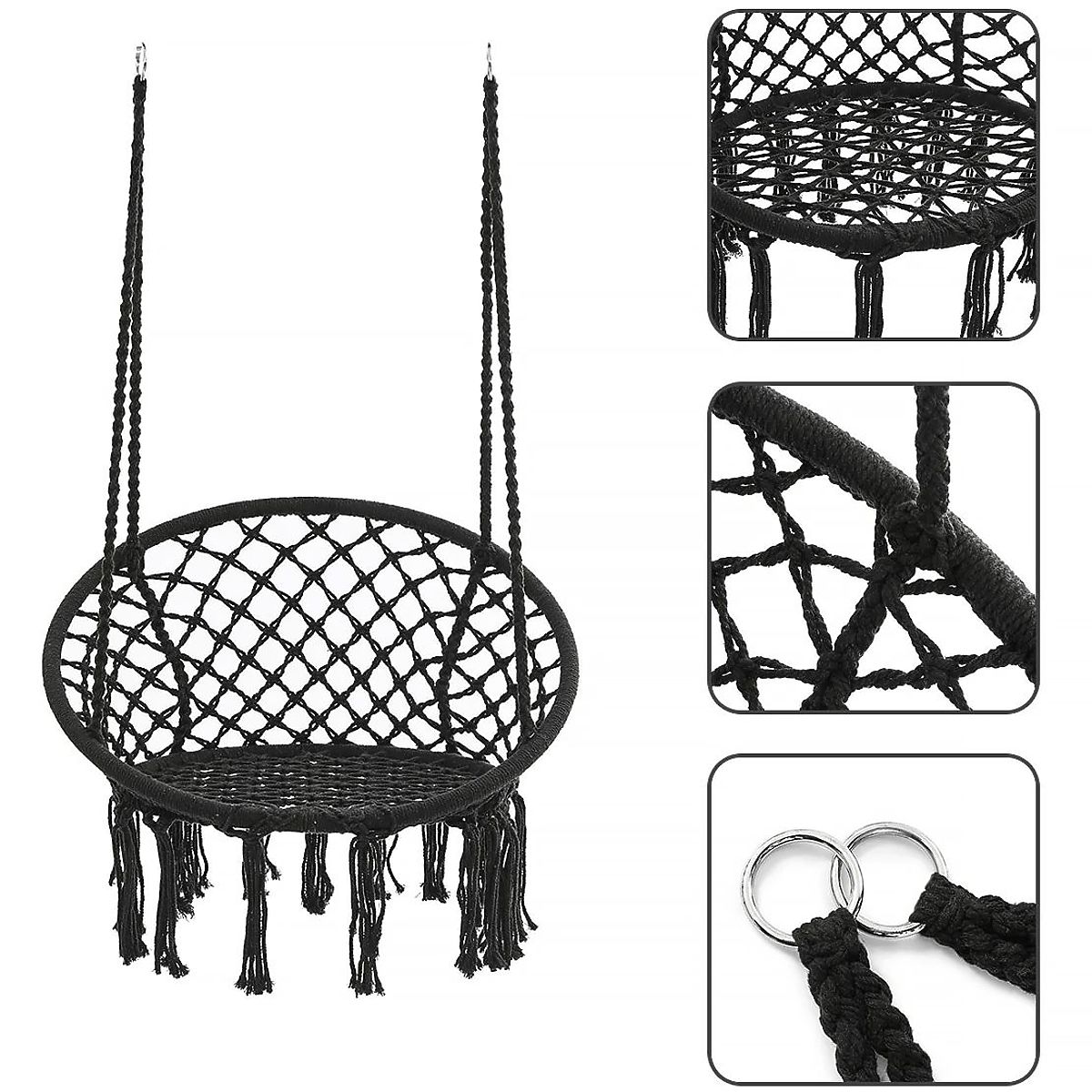 Hängesessel Boho mit Kissen Schwarz 490129A