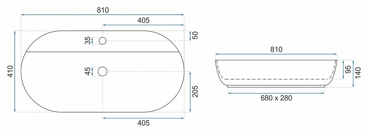 Das Waschbecken Rea Aura in einer interessanten elliptischen Form ergänzt perfekt jedes moderne Interieur. Es ist für die Montage auf einer Platte oder einem Schrank geeignet. Das Waschbecken ist nicht vollständig abgedeckt und hat einen Einschnitt hinten an der Montageöffnung für die Armatur.