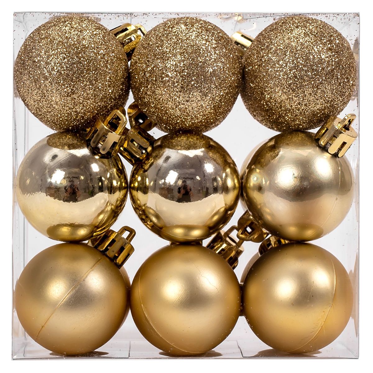 Wir präsentieren Ihnen ein Set von Weihnachtsdekorationen aus Kunststoff mit verschiedenen Oberflächenveredelungen, die das Aussehen Ihres Weihnachtsbaums bereichern. Die Dekorationen sehen am Baum großartig aus und sind bruchsicher, sodass Sie die Feiertage in Ruhe verbringen können, ohne sich um den Weihnachtsschmuck sorgen zu müssen. Lassen Sie alle den Zauber von Weihnachten spüren.