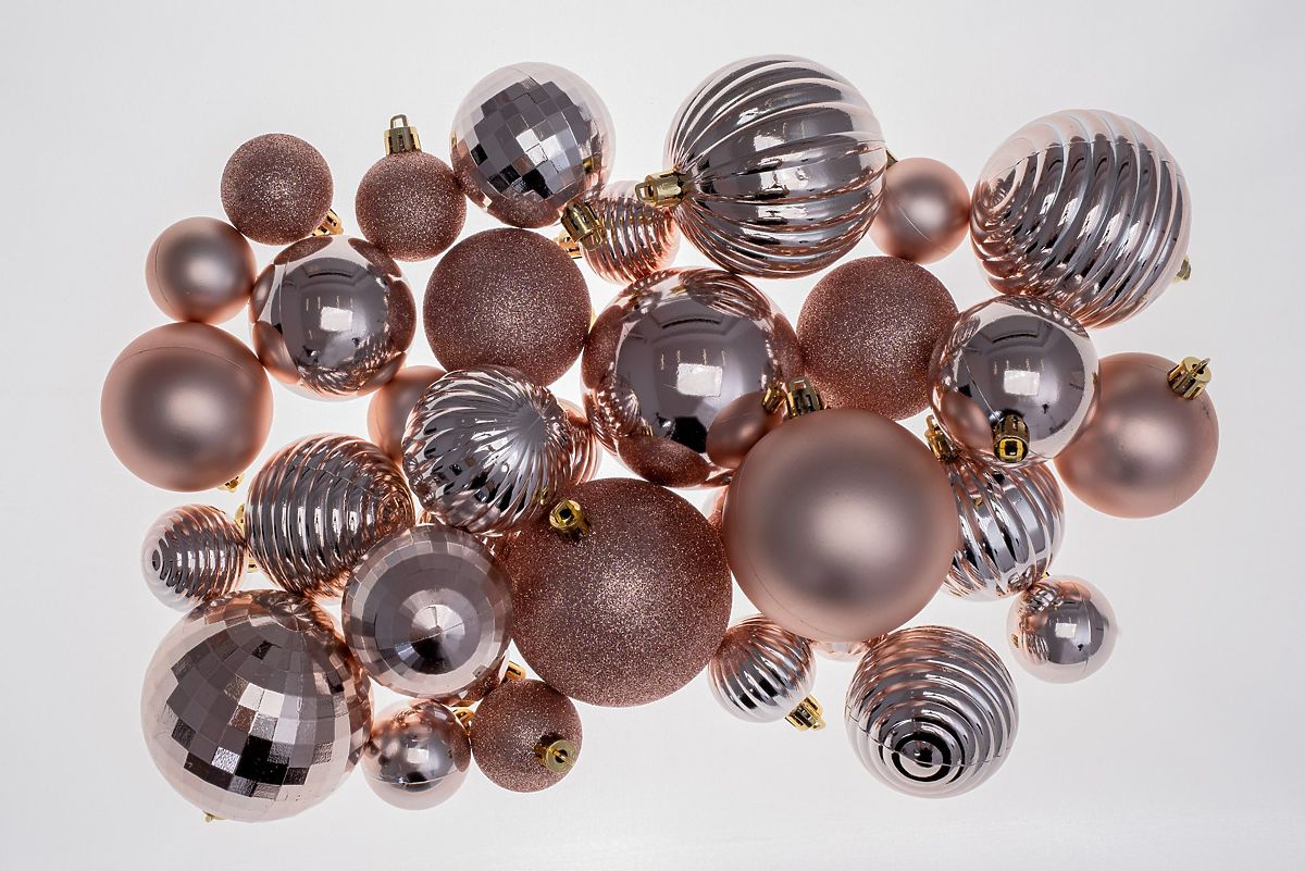 Bruchsichere Weihnachtskugeln in Rosa-Gold für eine zauberhafte Atmosphäre. .. mehr